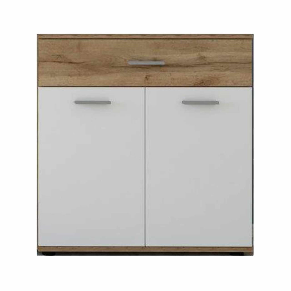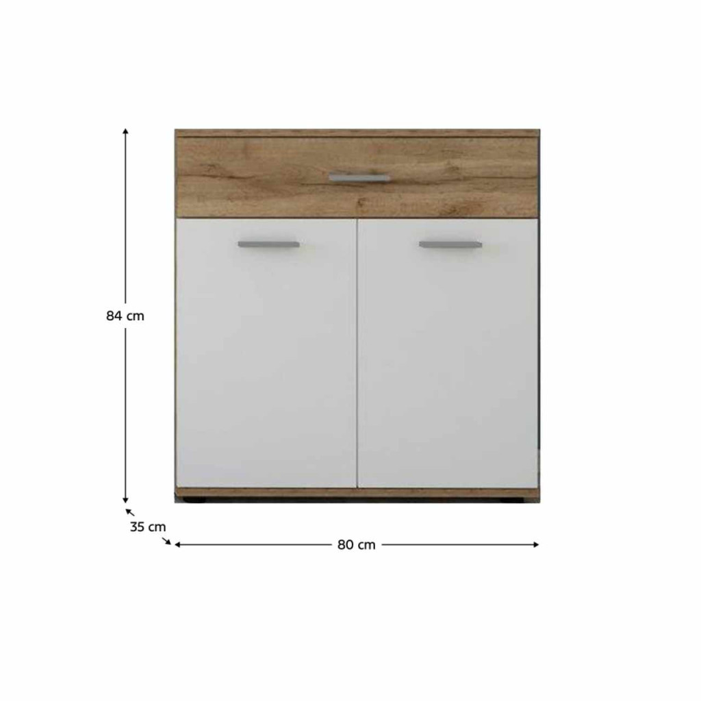 Anyag: laminált DTD/ABS élekSzín: wotan tölgy/ fehérMéretek (SzxMéxMa): 80x35x84 cmAnyag vastagsága: 1,6 cmPolcosKétajtósFiókEzüst műanyag fogantyúkFelső lemez teherbírása: 10 kgFiók teherbírása: 5 kgMűanyag lábakJavasoljuk a falhoz rögzíteniSzétszerelve szállítva