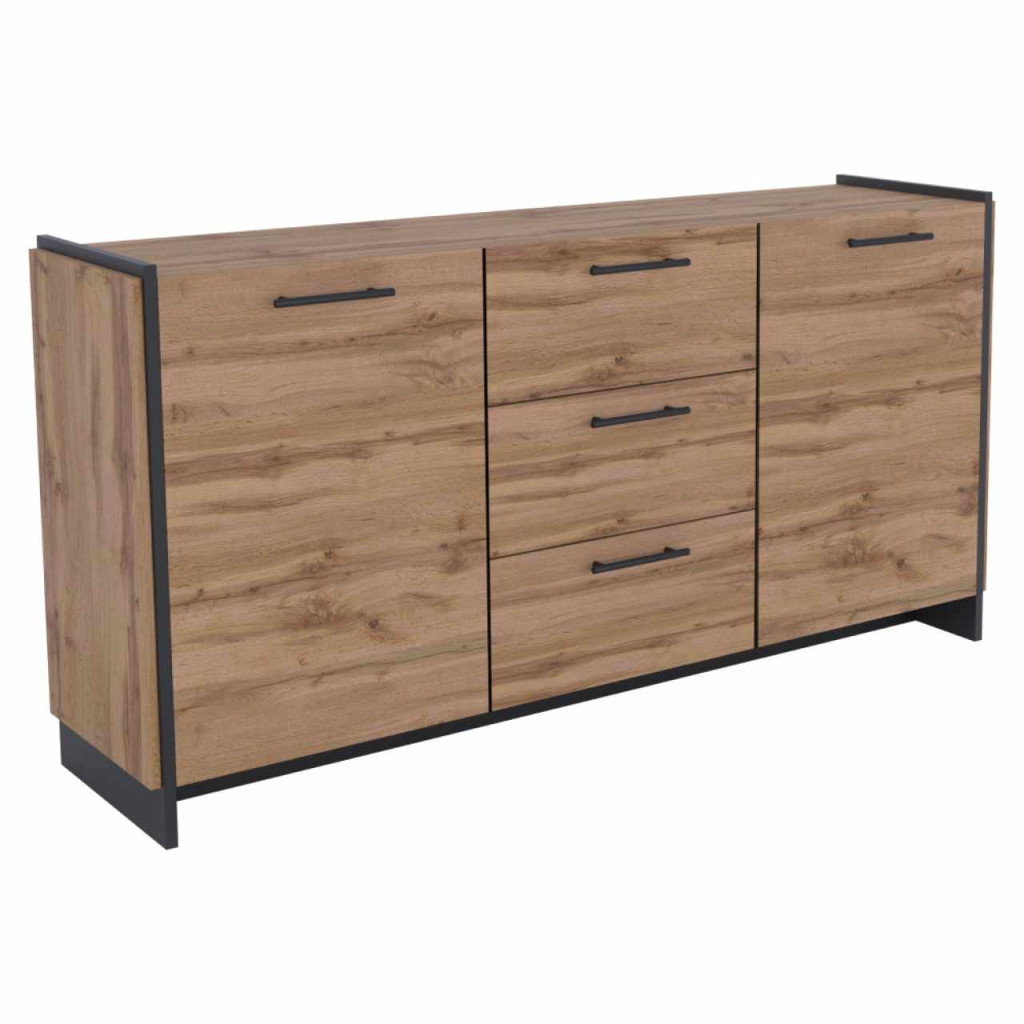 Komód, wotan tölgy/fekete, AMONI 2D3S | Barna | Faforgács