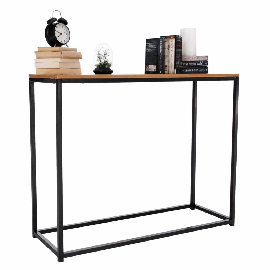 Szerkezet anyaga: fémSzerkezet színe: fekete Deszkalap anyaga: laminált MDFDeszkalap színe: tölgy Méretek (SzxMéxMa): 100x35x80 cm Lemez vastagsága: 1,6 cm Teherbírás: 10 kg Ipari stílus Kisasztal Tároló Egyszerű és univerzális kialakítás Esztétikus megjelenés Funkcionális Multifunkciós használat Bontásban szállítva