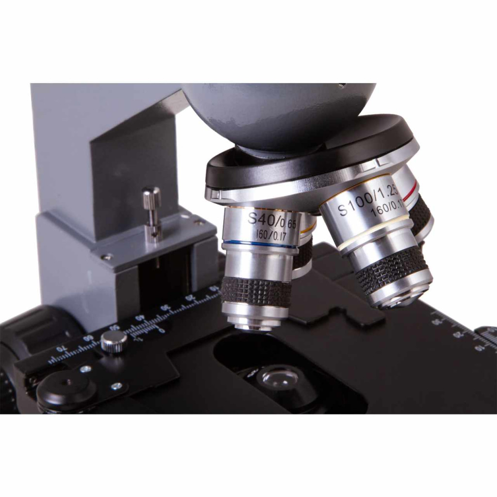 Az optikai elemek 40x és 1000x tartomány közötti nagyítást biztosítanak. Az akromatikus optikai elemeknek köszönhetően a látható kép kiválóan éles és kontrasztos. A monokuláris fejrész 360°-ban elforgatható, a széles látószögű szemlencse pedig kiváló látómezőt biztosít. A durva- és finomszabályozó gombokkal állítható az élesség.