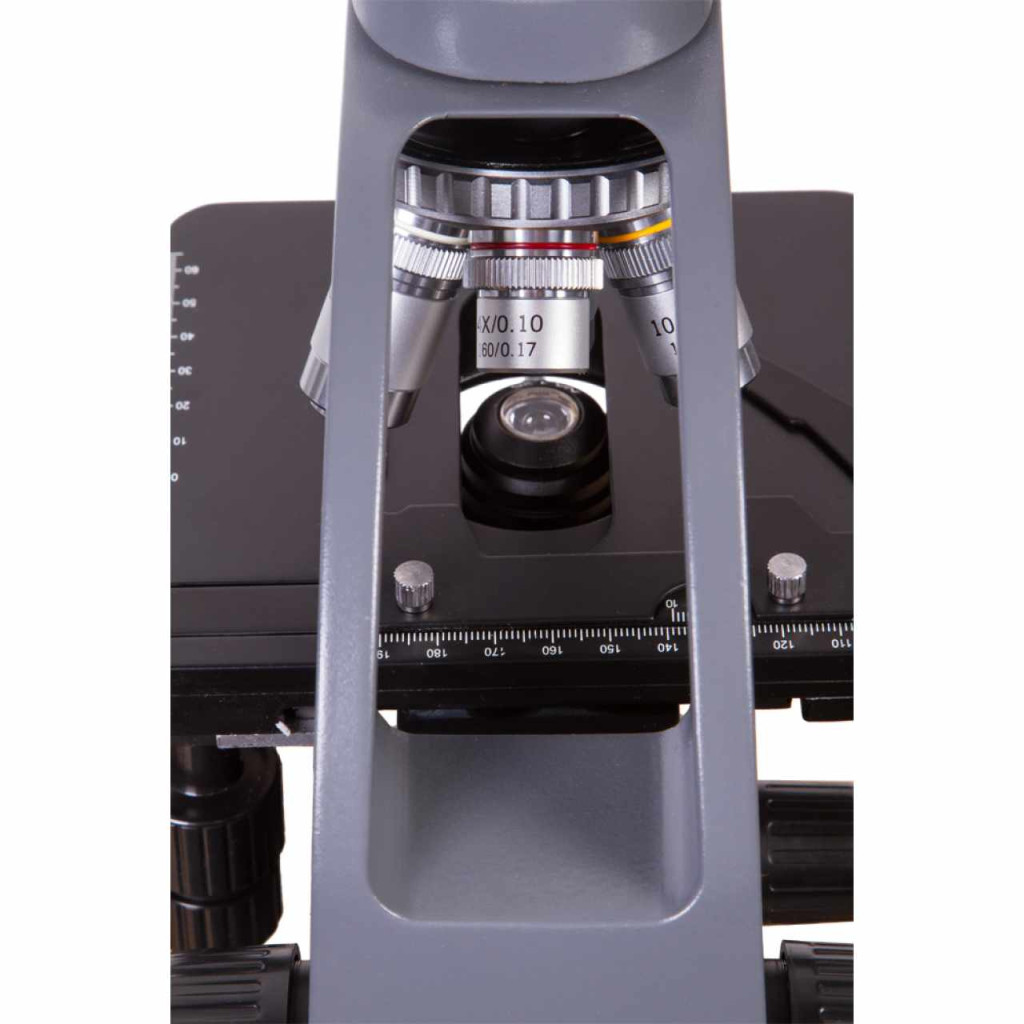 A mikroszkóp akromatikus objektívlencsével és cserélhető szemlencsékkel van felszerelve. Ezek kombinálásával 40x-2000x fix nagyítás is megvalósítható. A Levenhuk 720B mikroszkóp lehetővé teszi olajimmerziós kutatási módszer alkalmazását – speciális olajjal maximális nagyítás mellett. Egy üveg immerziós olaj megtalálható a csomagban.