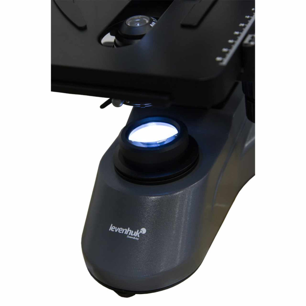 A minták alulról vannak megvilágítva ezért csak átlátszó mikroszkóp mintákat figyelhet meg. A fényes LED-lámpa a fénysugarat a kondenzoron keresztül az írisz diafragmával közvetlenül a kutatási területre irányítja. A világítás fényereje és a kondenzor rekesznyílása beállítható.