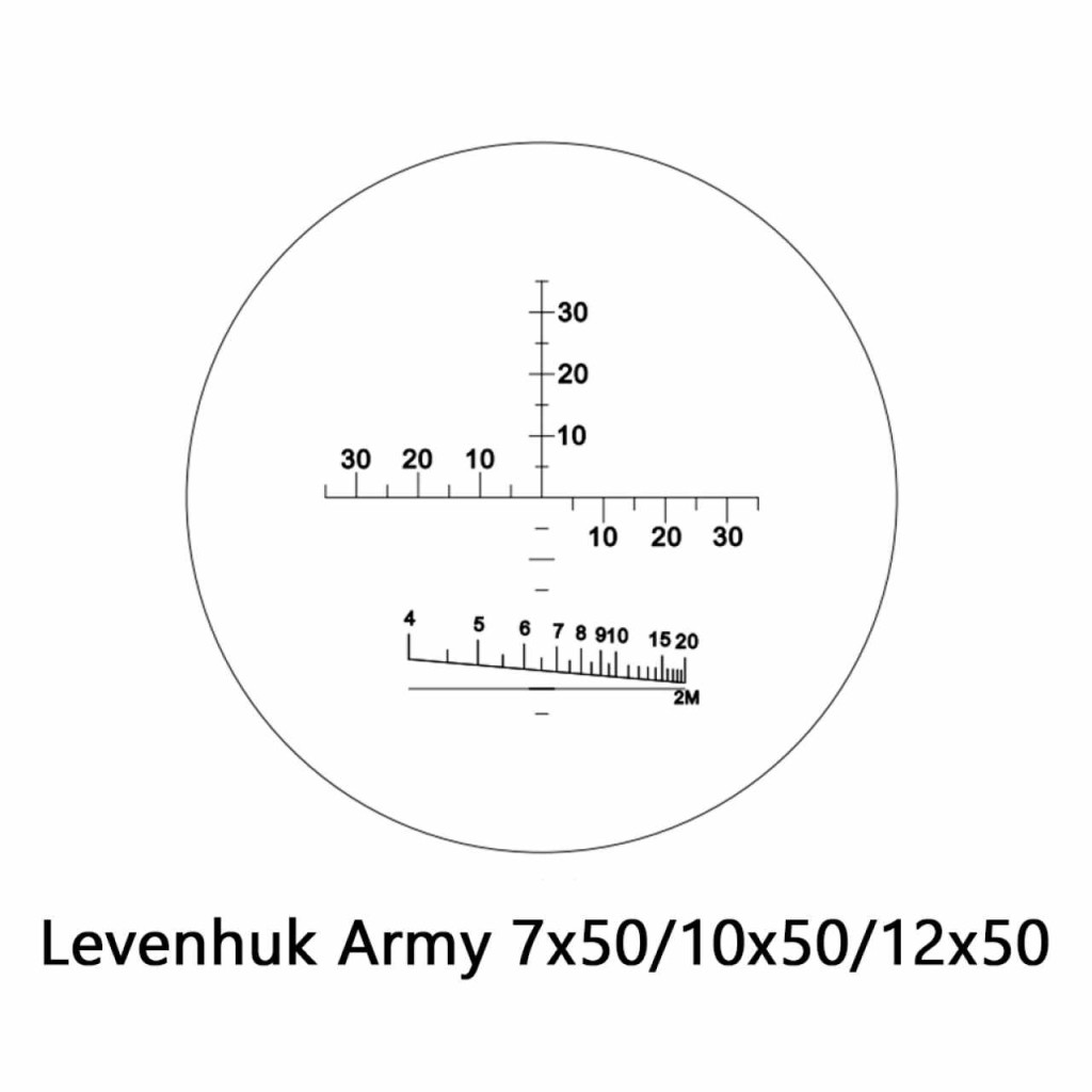 Az irányzékos Levenhuk Army 10x50 kétszemes távcső a 10x nagyítás mellett 50 mm-es lencséket és masszív kialakítást is kínál. Az eszköz tökéletesen használható professzionális célokra, beleértve a felderítési és kutatási műveleteket, a megfigyelést, a vadászatot, a sportokat, valamint a vadvilági kirándulásokat is. Felfedezheti vele a környezetét, távolságot mérhet, kiszámíthatja az objektumok magasságát, valamint meghatározhatja a vízszintes és a függőleges szögeket. A szemlencsében található skáláknak köszönhetően a kétszemes távcső sok esetben képes kiváltani a távolságmérőt, így nem kell két eszközt magával vinnie.