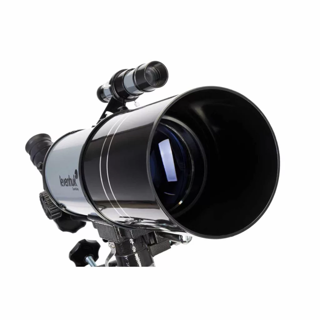 Akromatikus refraktor. Rekesznyílás: 80 mm. Fókusztávolság: 400 mm , A Levenhuk Blitz 80s PLUS teleszkóp egy rövid fókuszú és széles látómezejű akromatikus refraktor, amely nagy felbontásban jeleníti meg a képeket. A teleszkóp a magas rekesznyílásnak köszönhetően alkalmas asztrofotózáshoz. Megfigyelheti a világűrt és a világos mélyég-objektumokat is, igaz, az utóbbiakat nem részletgazdagon.