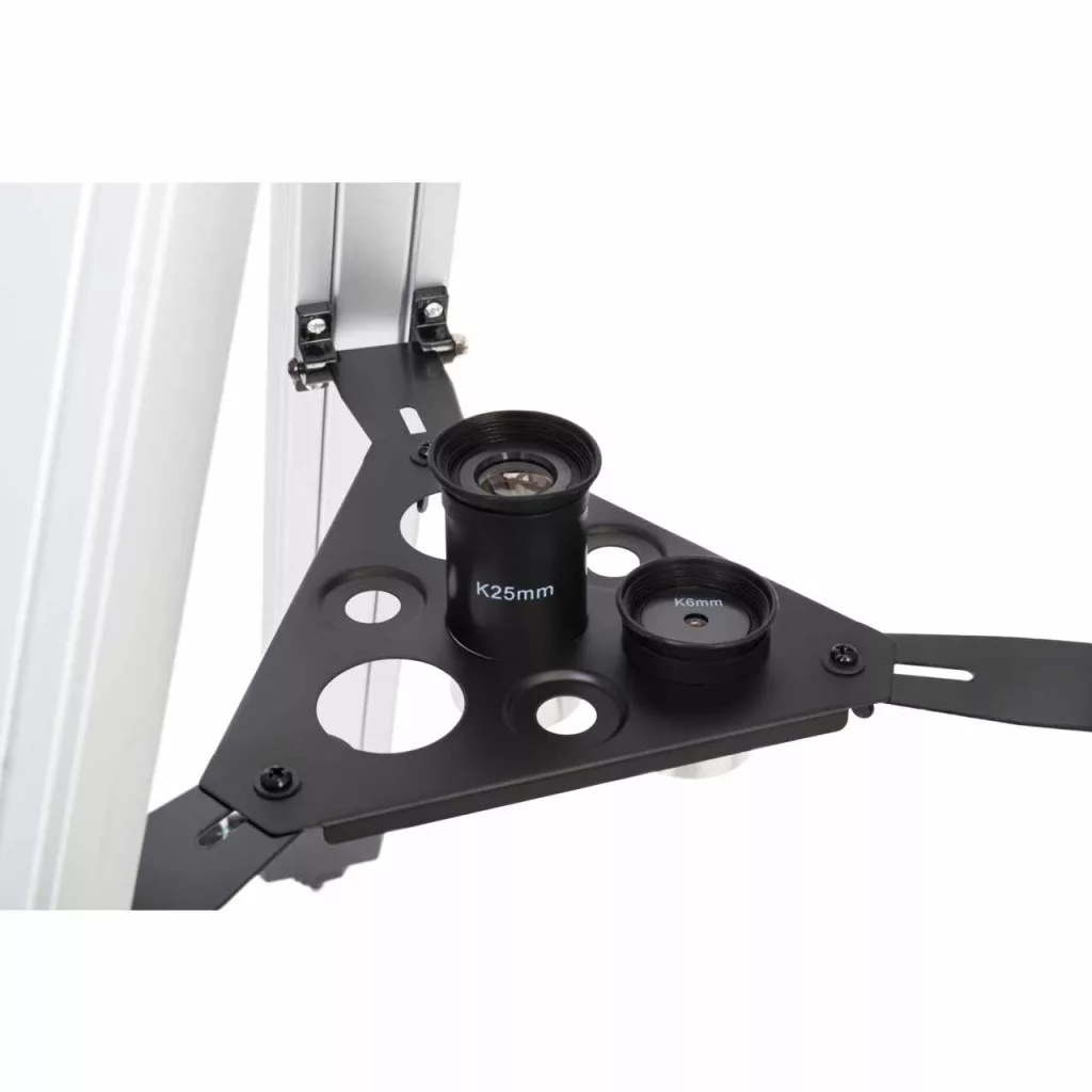 A teleszkóp kézi irányítású ekvatoriális állványra van szerelve. Ez az állványtípus kényelmesen használható a hosszú megfigyelésekhez. A lassú mozgatású vezérlőgombok segítségével pontosan és egyenletesen lehet nyomon követni az objektumokat az égbolton. Az állvány egy alumínium háromlábú állványhoz van rögzítve. Stabil, állítható, és középen található egy tartozéktartó tálca. A teleszkóphoz a sztenderd fókuszállítónak köszönhetően bármilyen (külön megvásárolandó) tartozék csatlakoztatható, amelynek a tubusátmérője 31,75 milliméter (1,25 hüvelyk).