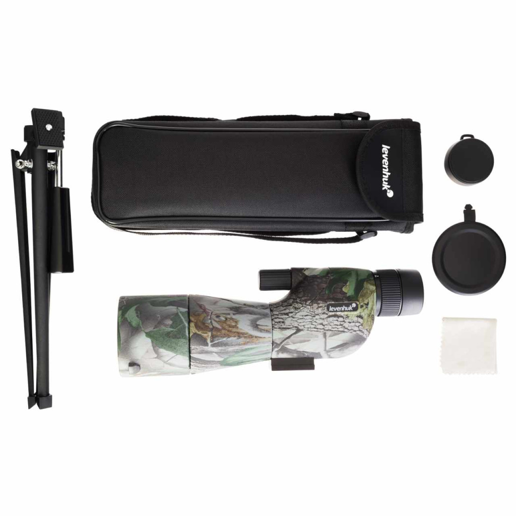A Levenhuk Camo 60 figyelőtávcső nagy teljesítményű optikai eszköz a földi objektumok megfigyeléséhez. Mivel a tubus egyenes, alkalmas megfigyelésre, amikor a látóirány egyenesen előre vagy felülről lefelé mutat, pl. toronyból vagy dombról. A figyelőtávcső hasznos és hatékony lesz vadászathoz, lövéshez, valamint terület- és határvédelemhez és a klasszikus tájmegfigyeléshez. Kis fém háromlábú állvány tartozik hozzá, amely állítógombbal működtethető.