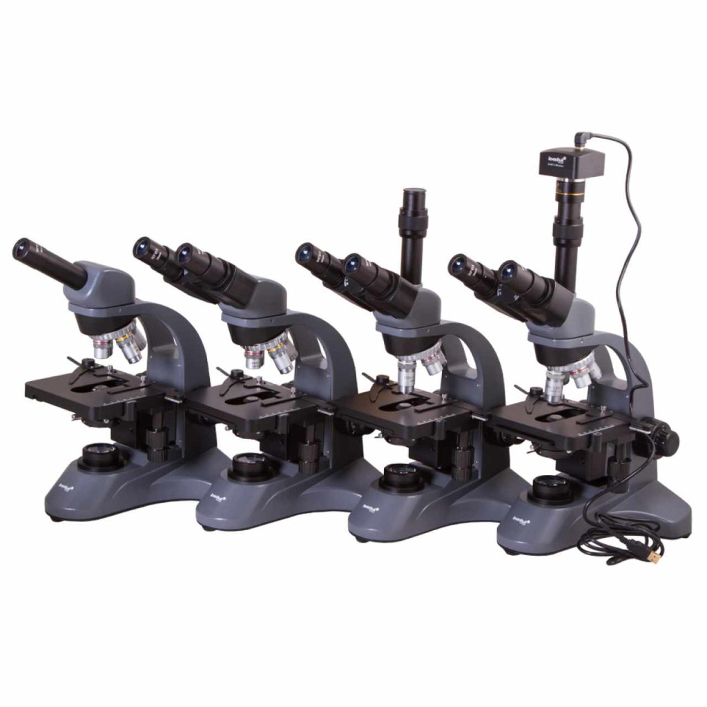 A Levenhuk D740T mikroszkóp háromszemes fejrésszel, akromatikus objektívlencsékkel és különböző nagyítású szemlencsékkel rendelkezik. A mikroszkóp nagyítási tartománya 40–2000x érték között mozog. A Levenhuk D740T mikroszkóp lehetővé teszi az olajimmerziós technika használatát.