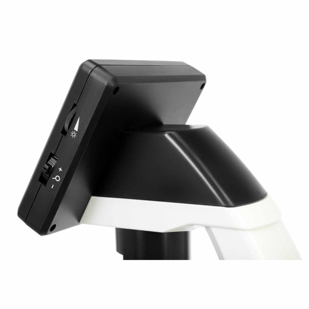A modell egyik előnye, hogy a megfigyelést anélkül végezheted, hogy a mikroszkópot számítógéphez kellene csatlakoztatnod köszönhetően a beépített, 3,5 hüvelykes LCD-kijelzőnek, így könnyen hordozható és önállóan is használható. A mikroszkóp, ha nincs számítógéphez csatlakoztatva, tölthető lítium ionos akkumulátorral működik (készletben megtalálható) 2 órán keresztül. A megfigyelések alatt készített képek és videók egy microSD kártyára kerülnek mentésre.