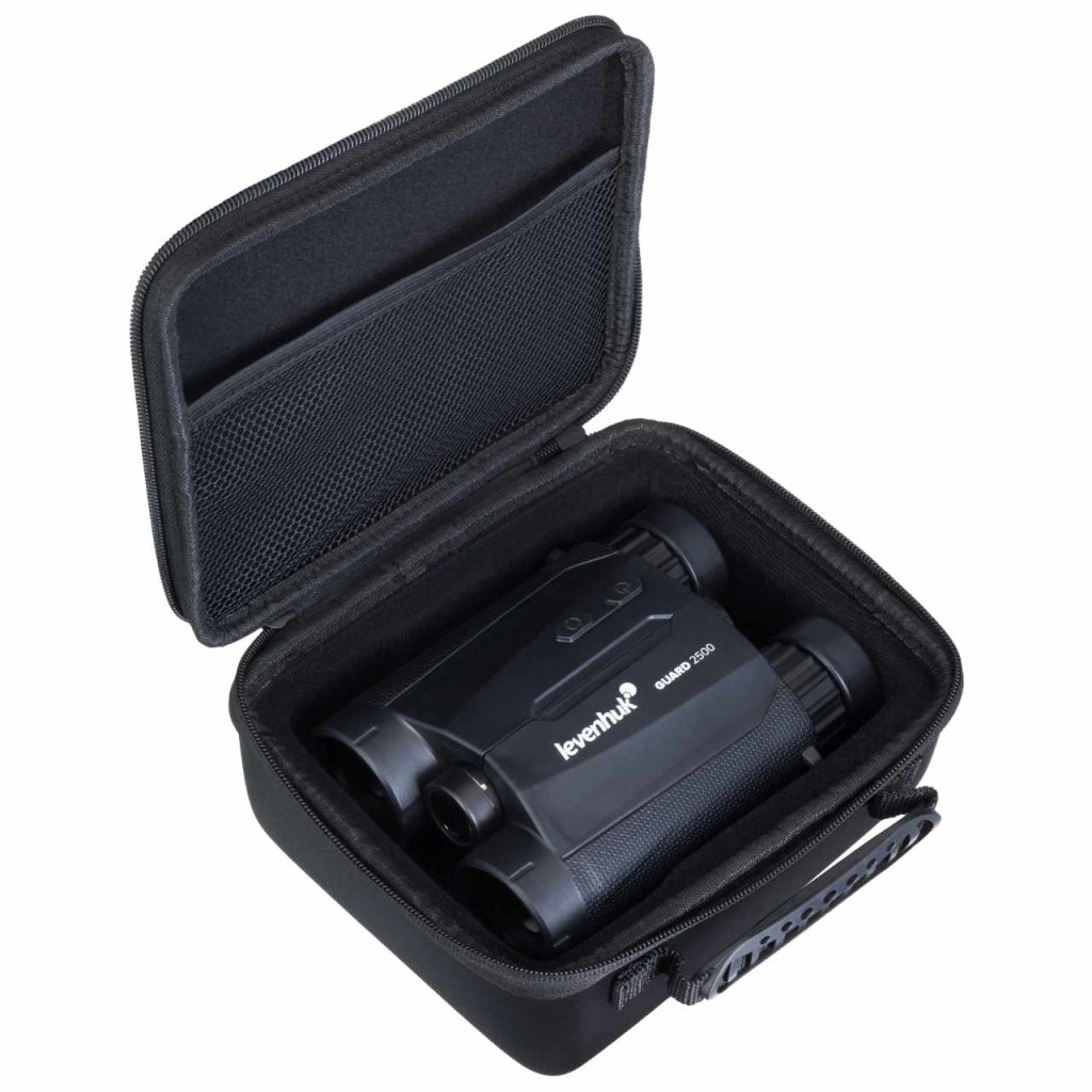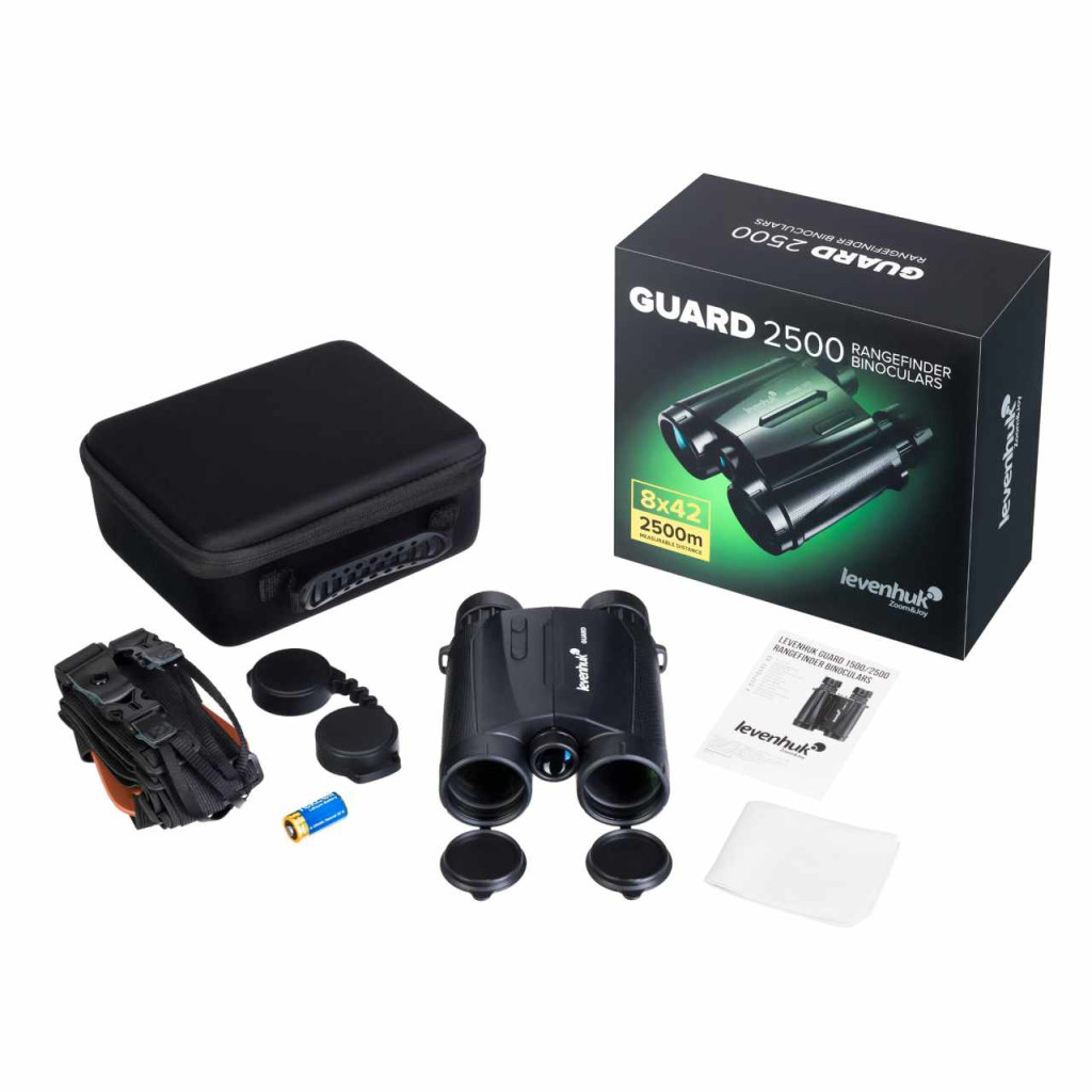 A Levenhuk Guard 2500 kétszemes távcsövek 8x-os nagy rekesznyílású kétszemes távcsövek, amelyek akár 2500 méteres távolságig célponttávolság-mérésre képes lézeres távolságmérővel rendelkeznek. Nem kell két optikai eszközt magával vinnie a túrázáshoz vagy a vadászathoz – a Levenhuk Guard 2500 minden szükséges funkciót biztosít Önnek. A Levenhuk Guard 2500 funkciói lehetővé teszi a mérést az alábbi problémák megoldásához: Lövéstávolság meghatározása a vad nyomon követésekor a távolság lemérése a fontosabb tereptárgyak (hidak, villanyvezeték-tornyok, póznák) között a terület feltérképezése, kiterjedt területek és határok őrzése stb.