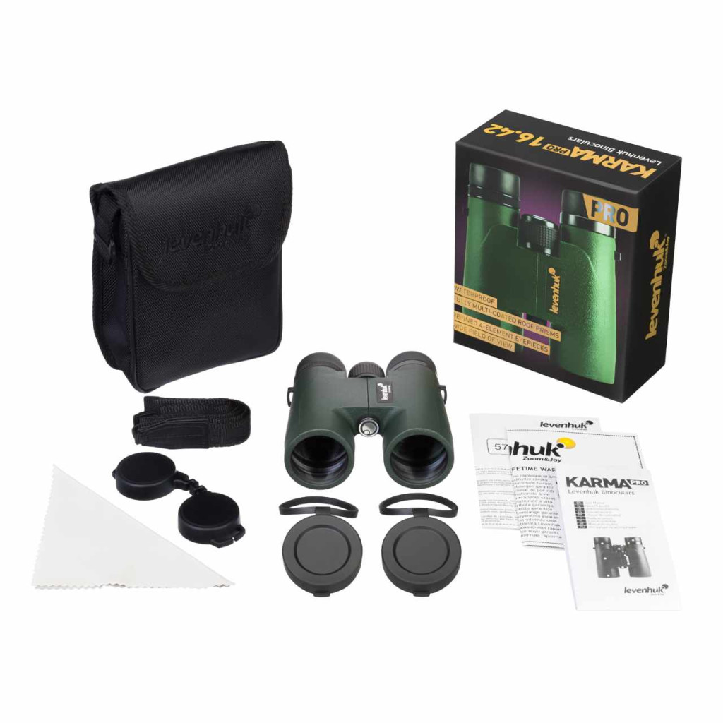 A Levenhuk Karma PRO 16x42 kétszemlencsés távcső hasznos, ha utazásról, túrázásról, állatok megfigyeléséről, nyomkövetésről vagy egyéb szabadban végzett tevékenységről van szó. A kiváló minőségű, teljesen és többrétegben bevonatolt optikai elemek kristálytiszta, fényes képek létrehozására képesek. A kétszemlencsés távcső stabil, vízálló házzal rendelkezik. Az eszköz bármilyen időjárási körülmények között használható.