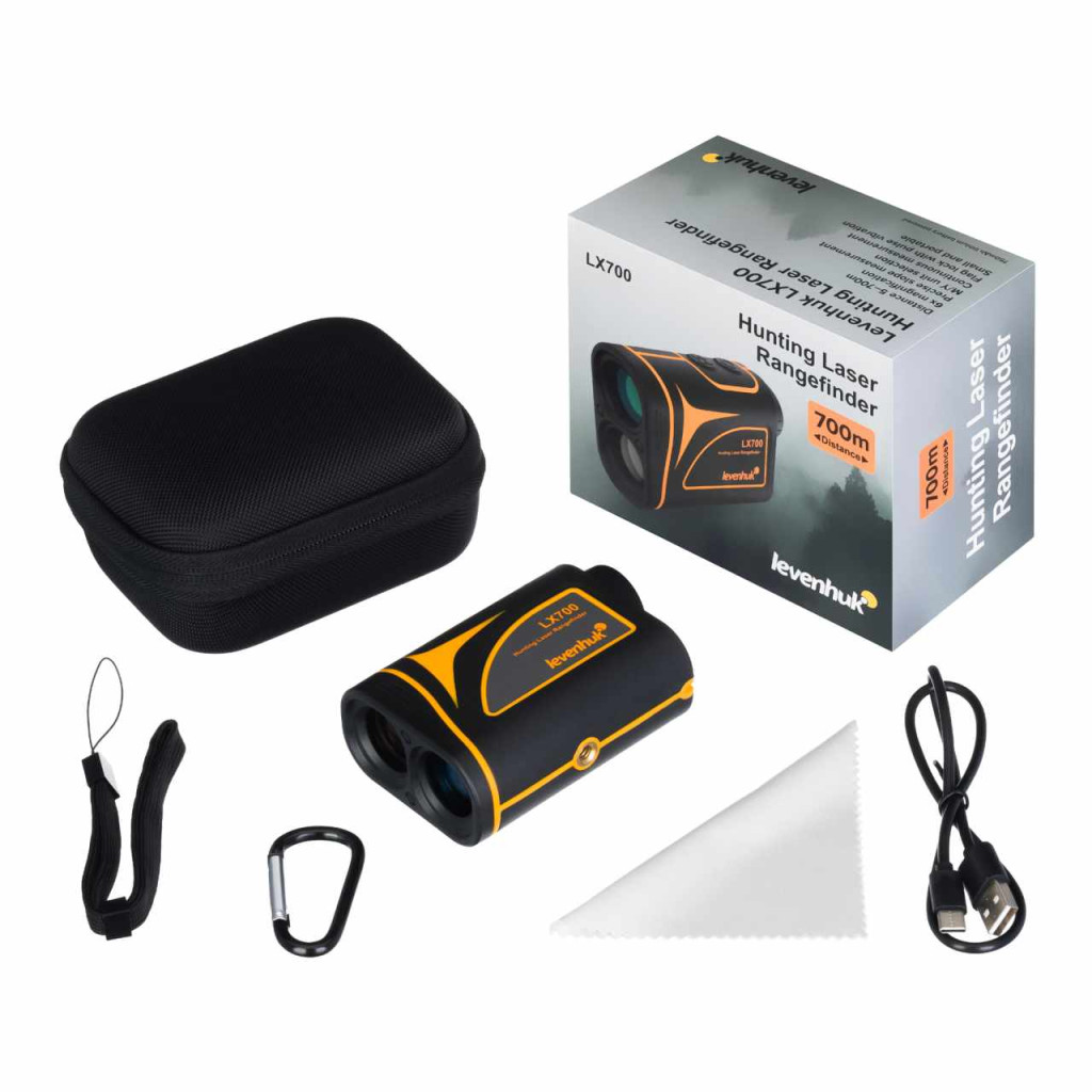 A Levenhuk LX700 lézeres távolságmérő egy kompakt és könnyű készülék, amely a távolság és a szögek mérésén túl a mozgó tárgyak sebességét is kiszámolja. Gyors teljesítmény, alacsony energiafogyasztás és a mérések nagyfokú pontossága jellemzi. Különböző méretű nagy (pl. épületek vagy fák), illetve viszonylag kicsi (pl. zászlórudak vagy apróvadak) tárgyakat egyaránt célozhat vele. A készülék 700 méter távolságig mér.