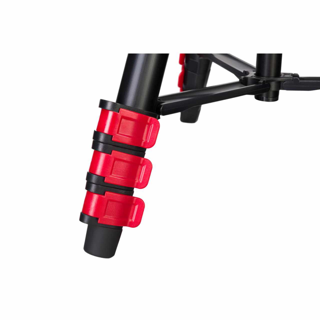 A háromlábú állvány magassága kétféleképpen állítható. Az egyik, hogy a központi oszlopot felfelé vagy lefelé mozdítja. A másik, hogy kicsúsztatja a lábprofilokat és bepattintja a csuklópántos zárszerkezetet, amikor a lábak már a kívánt magasságban állnak.
