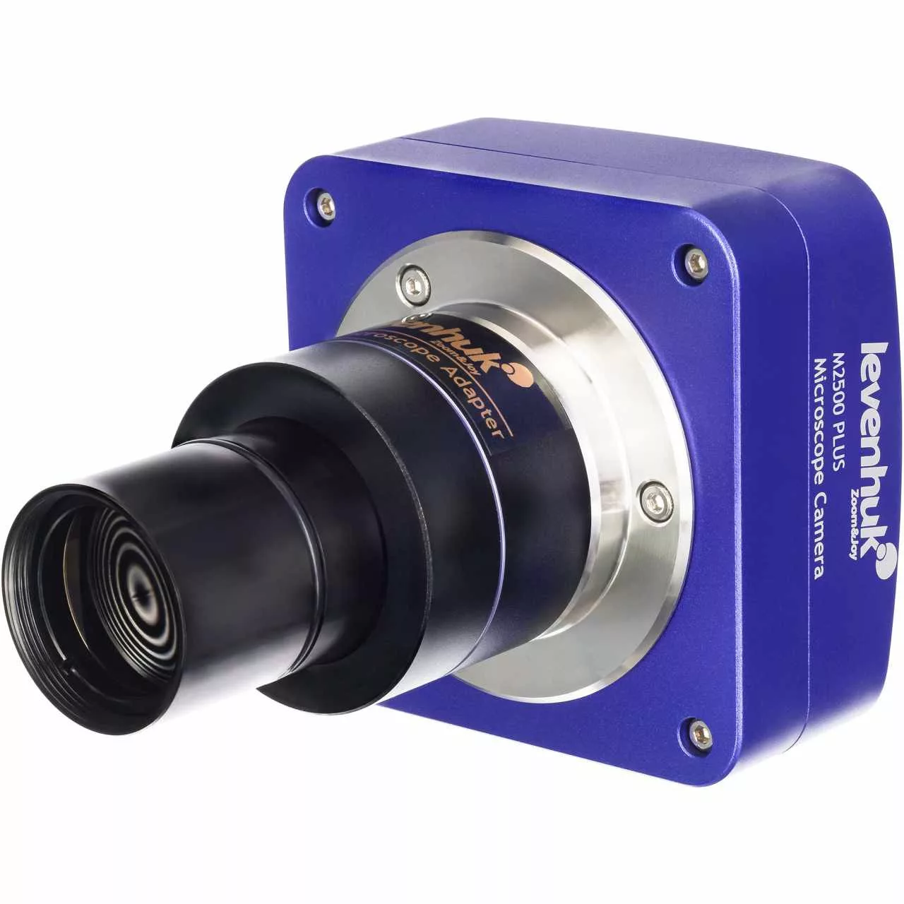 A Levenhuk M2500 PLUS digitális kamerát nagy felbontású képek rögzítésére terveztük, 4x és 10x nagyítású objektívekkel használva. A kamera 25 MP-es érzékelője még kisebb nagyítás mellett is lehetővé teszi a megfigyelt kép számos finom részletének tanulmányozását. Az érzékelő max. 4928x4928-as felbontású színes képet készít. A kamera használatát a világos látóterű kutatási módszerhez ajánljuk.