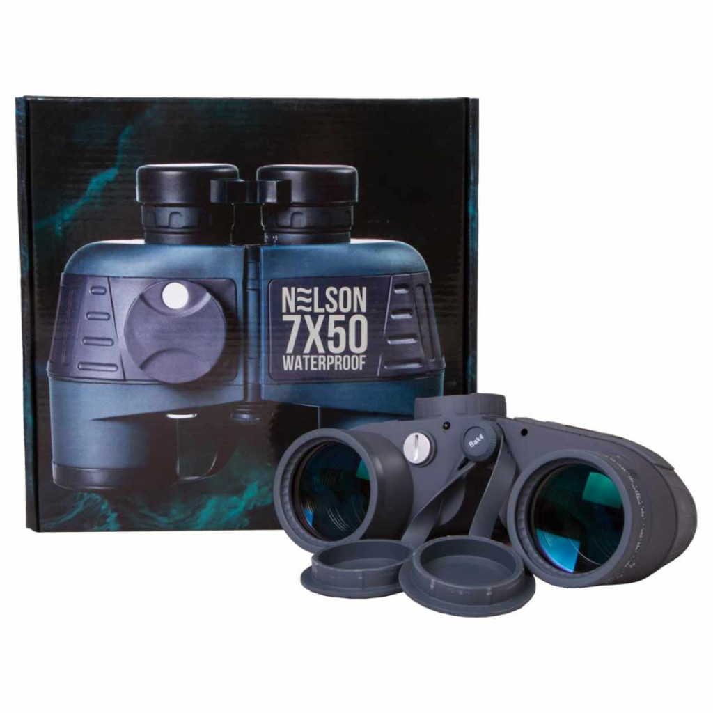 A Levenhuk Nelson 7x50 tengeri kétszemes távcsövet halászok, jachttulajdonosok és a vízi utazások kedvelői számára tervezték. Az optikai eszközt vízálló burkolat védi. A 7x nagyításra képes kétszemes távcső segítségével a távoli objektumok részletei is jól megfigyelhetők. A közelfókusz távolsága négy méter.