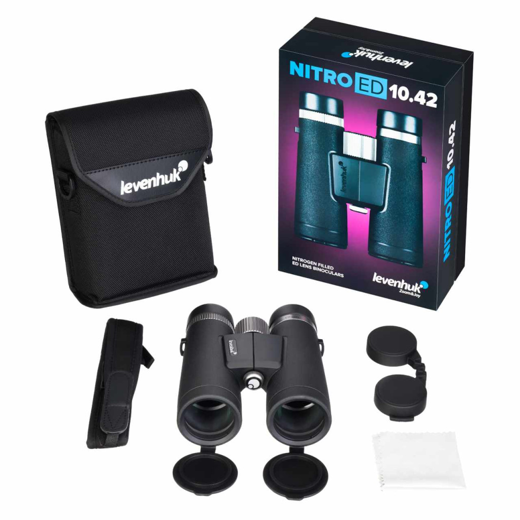 Az ED optika színhibától mentes képet készít, jelentősen javítva a minőséget és a felbontást. Az üveg teljesen bevonatolt, növeli a fényáteresztést, ami különösen fontos alkonyatkor és felhős időben végzett megfigyeléseknél, amikor nincs kint fény. A Levenhuk Nitro ED 10x42 kétszemes távcső optimálisan kombinálja a nagyítást és a látómezőt – egyrészt távoli tárgyakat nézhet, másrészt pedig nézheti az egész tájat.