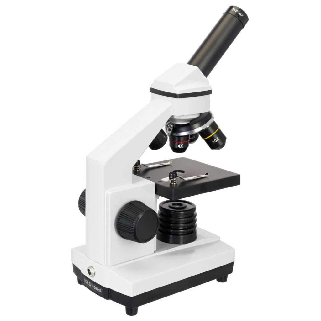 A mikroszkóp megbízható fém teste lehetővé teszi a gyakori használatot. A 45 fokban döntető, egyszemes fejrész lehetővé teszi, hogy a lehető legkényelmesebben végezhesse megfigyeléseit. 360 fokban forgatható a tengelye körül – ez a funkció nagyon hasznos csoportos munkavégzés esetén.