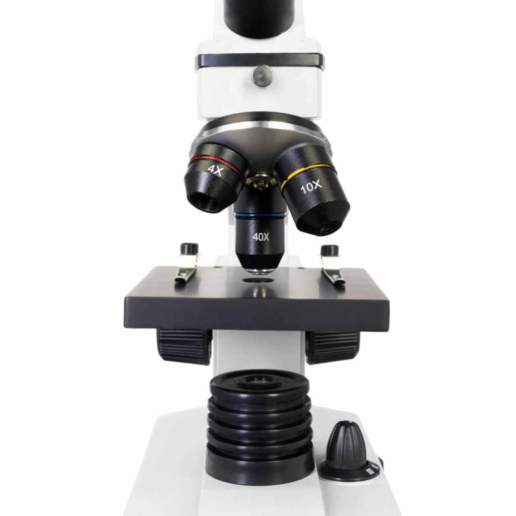 A revolverfej három, 64-szeres, 160-szoros és 640-szeres nagyítást biztosító objektívvel rendelkezik. A nagyítás mértékének megváltoztatásához ki kell cserélni az objektíveket a revolverfej elforgatásával. A legnagyobb teljesítményű, 40-szeres nagyítást biztosító lencse egy rugós szerkezettel van felszerelve – a törékeny optikai elemek biztonságban lesznek akkor is, ha egy tapasztalatlan felhasználó esetleg túl messzire engedi le az objektívet és megérinti vele a mintát.