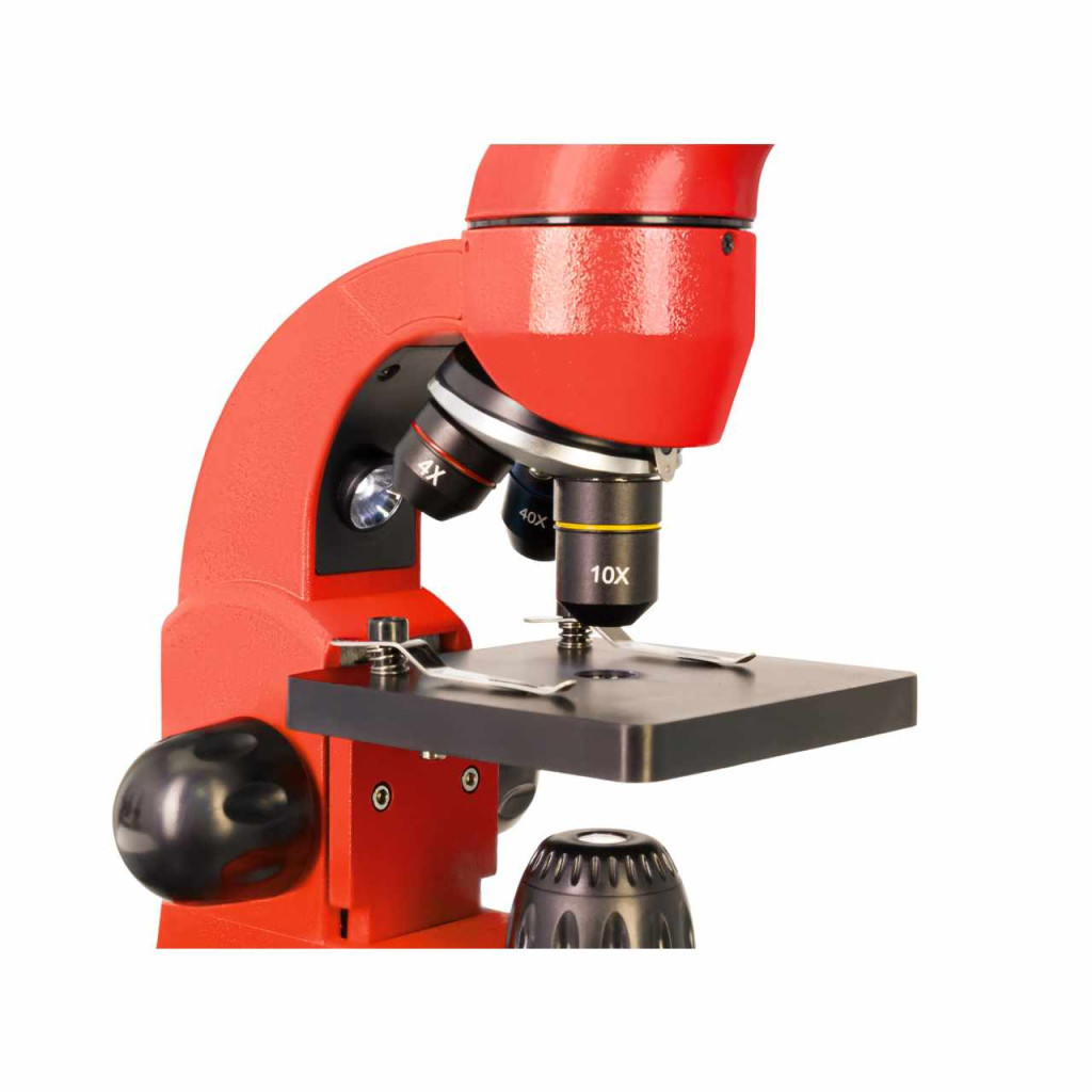 A mikroszkóptest minőségi műanyagból készült, a műszer ezért könnyű, mégis tartós. A fejrész 45°-ban dönthető, így megfigyeléseit még kényelmesebb helyzetben tudja elvégezni. 360°-ban forgatható is a tengelye körül, ami kifejezetten kényelmes csoportos megfigyelések során – a fejrész könnyedén forgatható a soron következő, megfigyelést végző résztvevő számára. A mikroszkóp elektromos hálózatról vagy elemekkel működtethető.