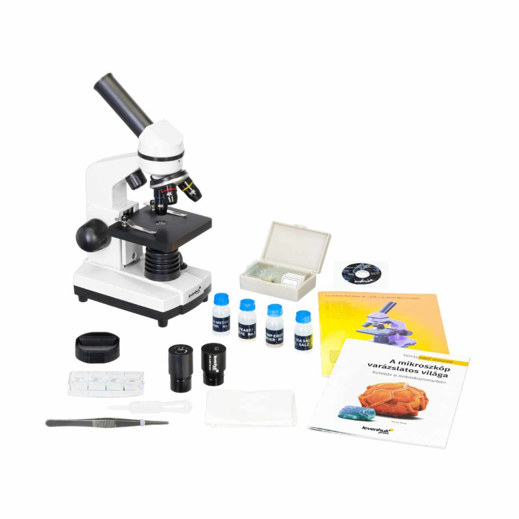 A mikroszkóphoz Levenhuk K50 kísérletező készlet jár. A készletben minden megtalálható, ami az izgalmas mikroszkópos kísérletekhez szükséges lehet. A csomagban azonnal felhasználható mikroszkóp tárgylemezek, a mikroszkóp minták elkészítéséhez szükséges eszközök és részletes felhasználói útmutató található számos izgalmas kísérlet leírásával.