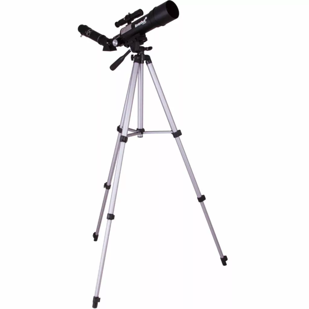 A Levenhuk Skyline Travel Sun 50 utazáshoz, hosszú sétákra megfelelő általános távcső. Bármilyen korú kezdő csillagásznak tökéletes ez a kompakt refraktor. Megfelelő a Naprendszer bolygóinak és a Holdnak a megfigyeléseire ugyanúgy, mint földi megfigyelésekre – diagonális tükör tartozik hozzá. Álló (torzulásmentes) képet ad, a távcső optikai tengelyét is megtöri, ami kényelmesnek bizonyul, amikor messze a láthatár fölötti objektumokat kívánunk vizsgálni.