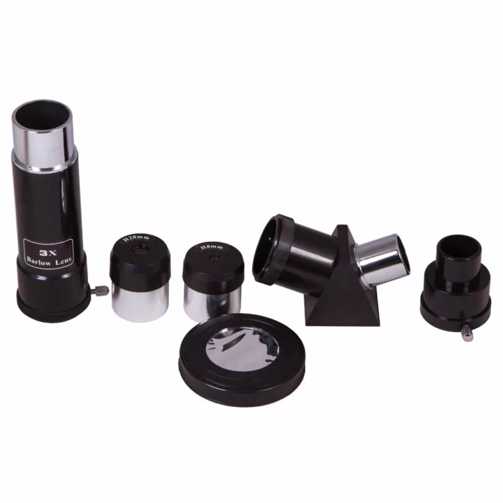 Több réteges tükröződésmentes bevonat biztosítja a jó képminőséget. A készlethez 1,25 hüvelyk átmérőjű szemlencsecső és egy 45x és 18x nagyítású szemlencse tartozik. A készletben kapott 3x Barlow-lencse és az okulár együtt 135-szörös nagyítást enged meg.
