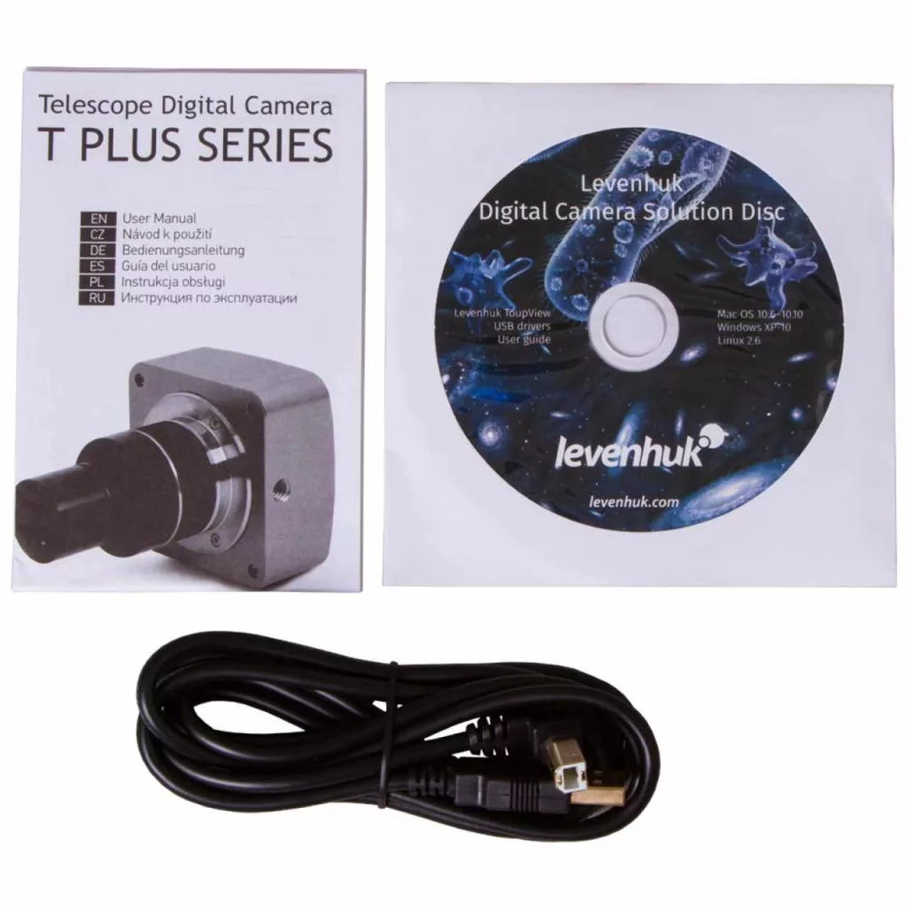 A Levenhuk T300 PLUS digitális kamera kitűnő eszköz az asztrofotózás szerelmeseinek. Ez a kamera lehetővé teszi, hogy az űrt számítógép segítségével figyeld meg, miközben akár 2048x1536 képpontos felbontású képeket készíthetsz, és akadozásmentes videókat készíthetsz akár 43 képkocka/mp képkocka-sebességgel. A Levenhuk T300 PLUS kiváló kezdők, tapasztalt amatőrök és profik számára.