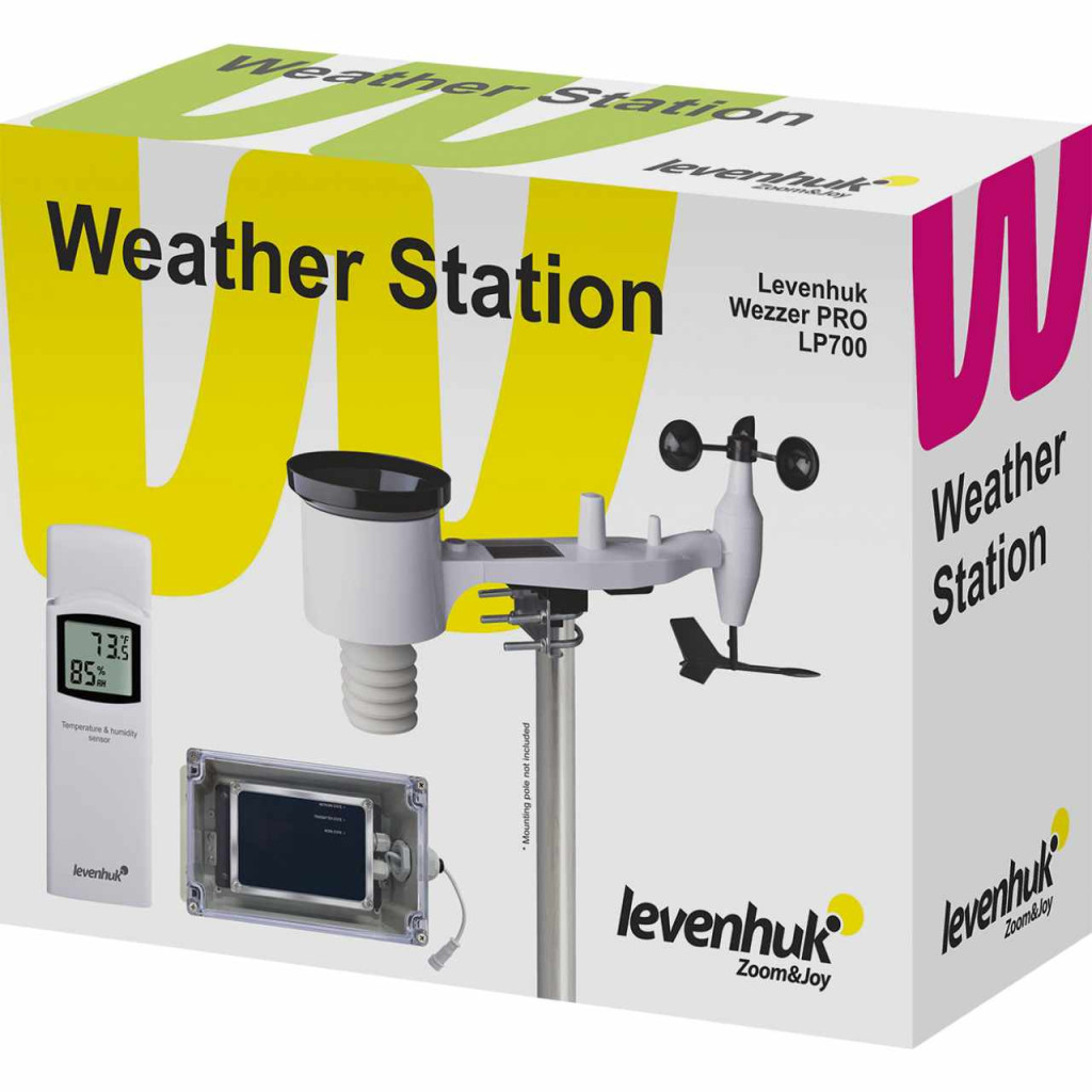 A Levenhuk Wezzer PRO LP700 időjárás-állomás olyan modern berendezés, amely mind a beltéri, mind a kültéri környezetről pontos információval szolgál. A készülék pontosan rögzíti a légköri nyomást, a hőmérsékletet és a levegő páratartalmát beltérben, és még több paramétert kültéren: a hőmérsékletet, a páratartalmat, a szélirányt, a szélsebességet, a csapadék mennyiségét, a fényerősséget és UV-indexet. Az időjárás-állomás tökéletes otthoni használatra, valamint mezőgazdasági céllal az időjárási viszonyok értékelésére.