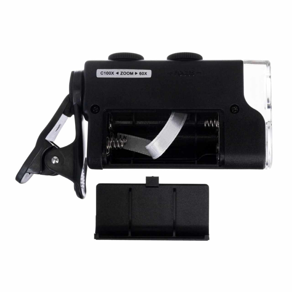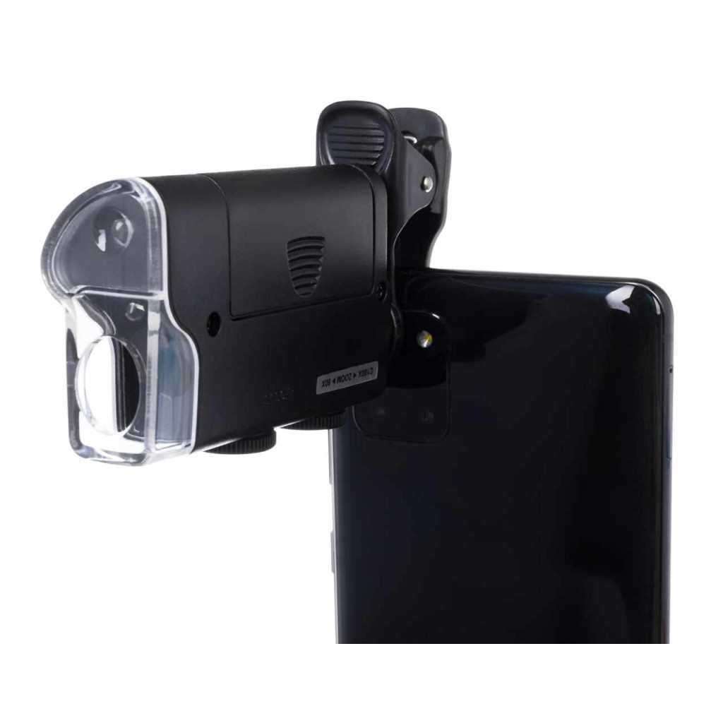 - Zsebmikroszkóp csíptetővel mobileszközhöz való csatlakoztatás érdekében