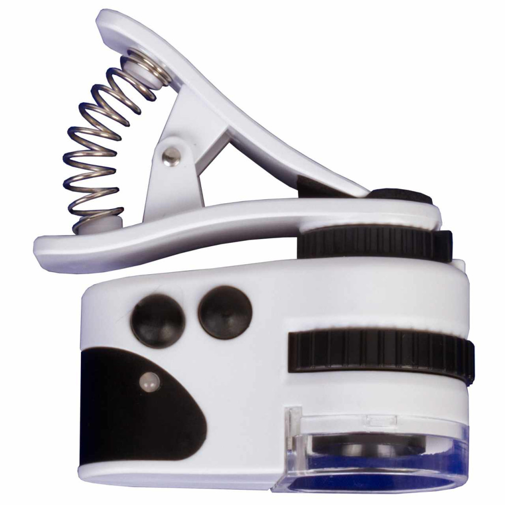 - Zsebmikroszkóp csíptetővel mobileszközhöz való csatlakoztatás érdekében