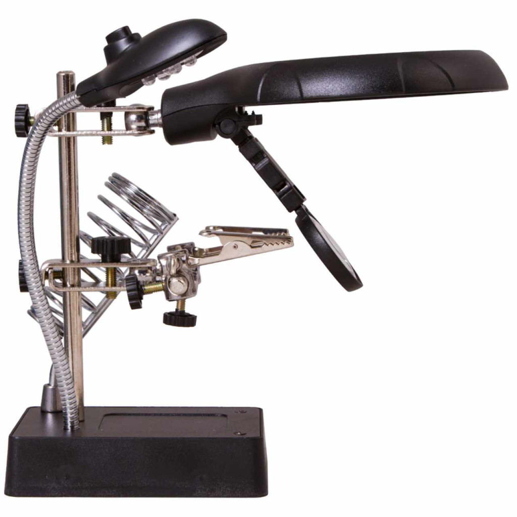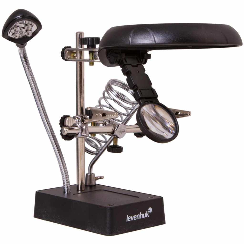 A Levenhuk Zeno Desk D11 nagyító kombinálható lencsékkel, LED-világítással, rugalmas nyakkal, „harmadik kéz” eszközzel és egy munkaeszközök számára készült tartóval van felszerelve. Elengedhetetlen segédeszköz mindenkinek, aki aprólékos kézimunkát végez, például ékszerészeknek, villanyszerelőknek, órásmestereknek vagy modellezőknek.