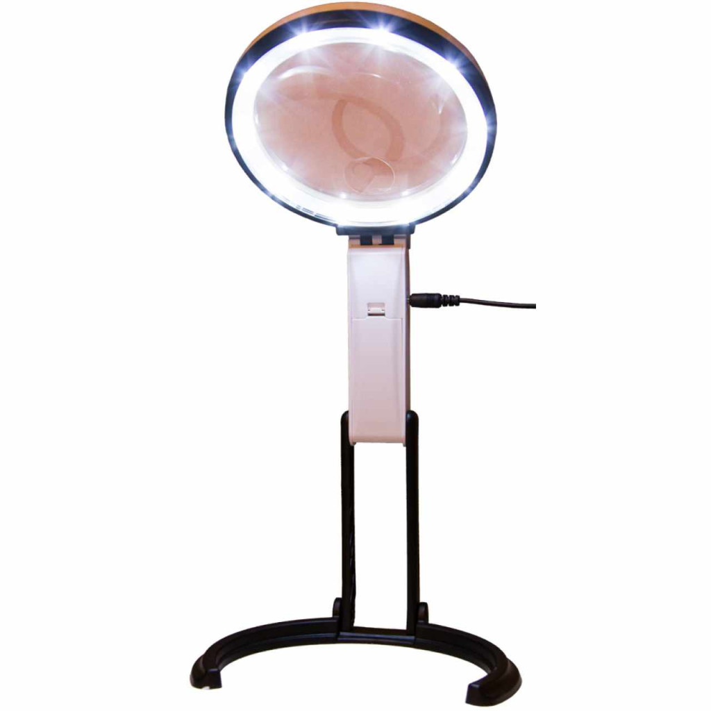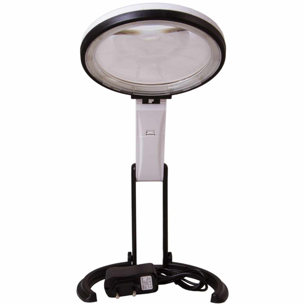 A Levenhuk Zeno Desk D7 egy kényelmesen használható, asztali eszköz nagy átmérőjű bifokális lencsével. Tökéletesen megfelel hosszú ideig tartó, közeli vizsgálatokhoz, kis tárgyak javításához, alkotáshoz vagy olvasáshoz. A kihajtható nyaknak köszönhetően az eszköz könnyedén, három lépésben átalakítható klasszikus kézi nagyítóvá. A bifokális lencse 2-szeres és 5-szörös nagyítást tesz lehetővé. A fényes fénykibocsátó diódák a lencse peremén helyezkednek el. A látómezőben lévő tárgyat egyenletesen, árnyékok nélkül világítják meg. A világítás A/C adapterrel vagy elemekkel működik.
