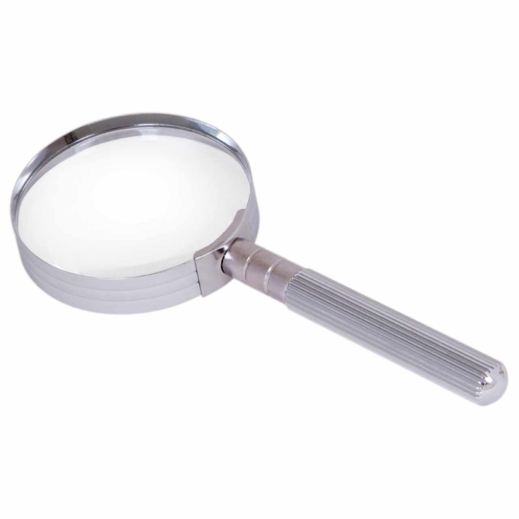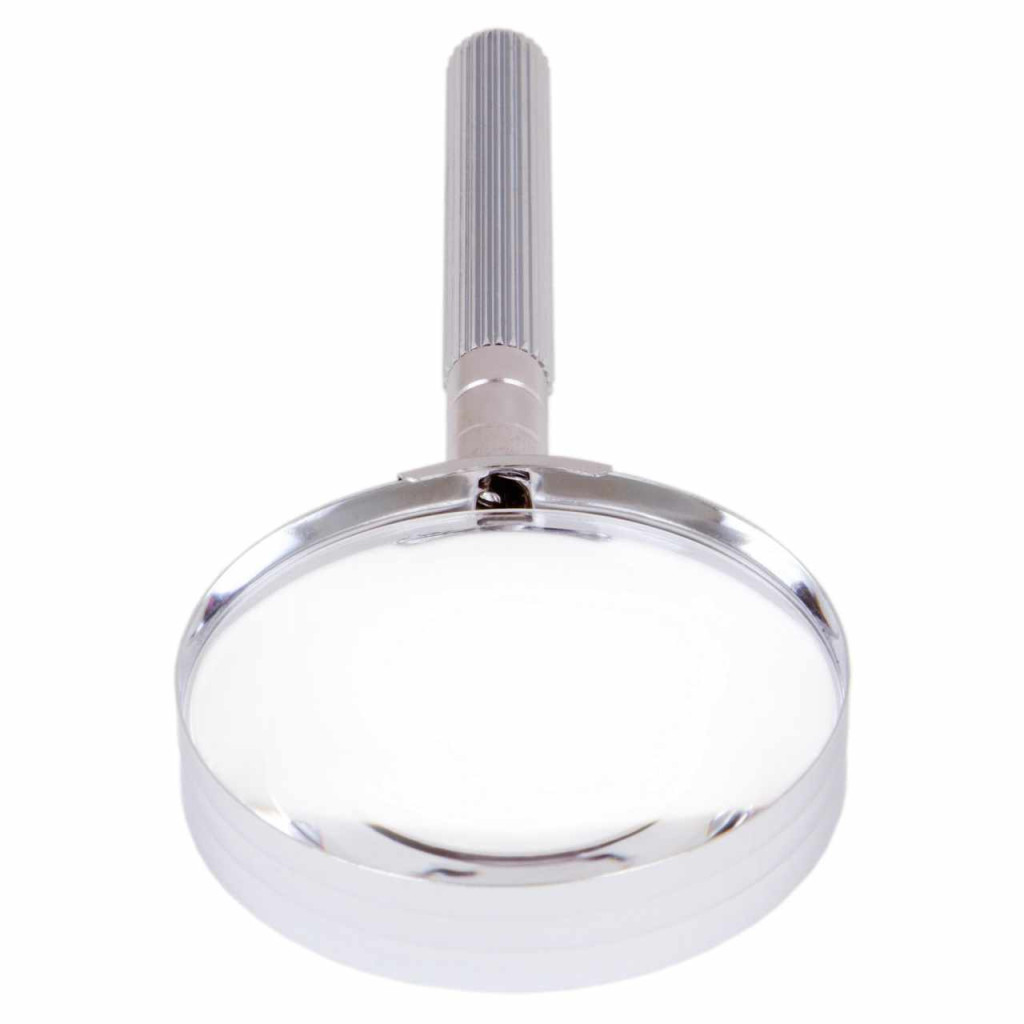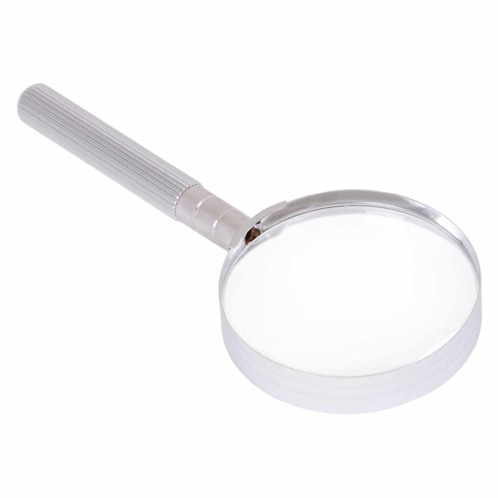 Ez a masszív nagyító ellenáll az ütéseknek. Fém nyele kényelmes és megbízható fogást biztosít.