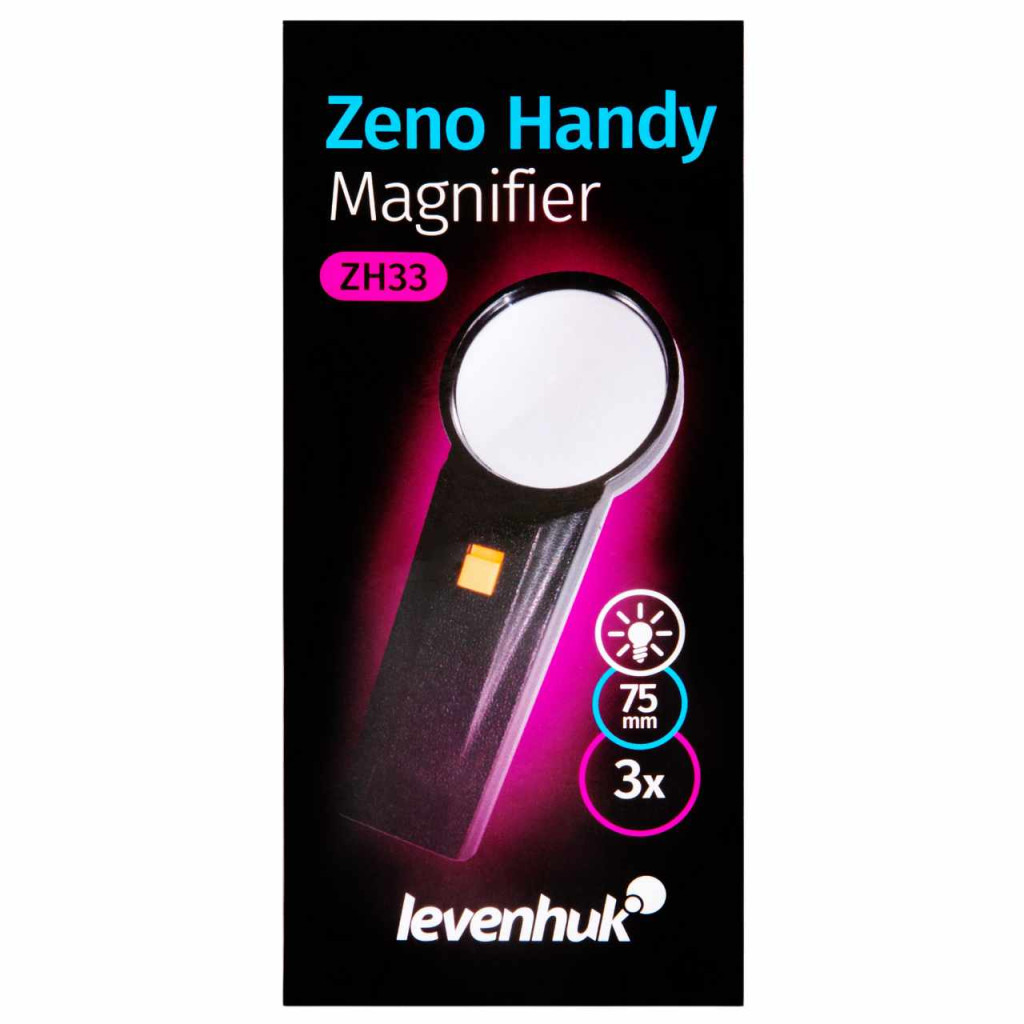 A Levenhuk Zeno Handy ZH33 nagyító fényforrással van ellátva: segít a rossz fényviszonyok közötti munkavégzésben. A lámpa kapcsolója a nyélen található, a helyzete pedig ujjal könnyen módosítható. Ez a nagyító tökéletes apró tárgyak tanulmányozásához vagy kisbetűk kiolvasásához.