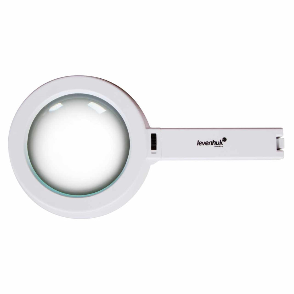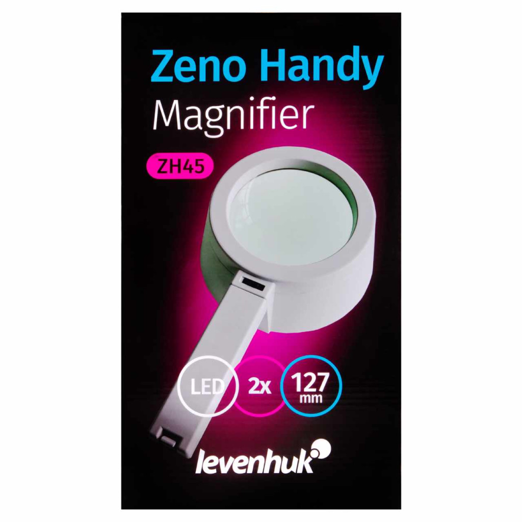 A Levenhuk Zeno Handy ZH45 nagyító fényforrással van ellátva: segít a rossz fényviszonyok közötti munkavégzésben. A lámpa kapcsolója a nyélen található, a helyzete pedig ujjal könnyen módosítható. Ez a nagyító tökéletes apró tárgyak tanulmányozásához vagy kisbetűk kiolvasásához.