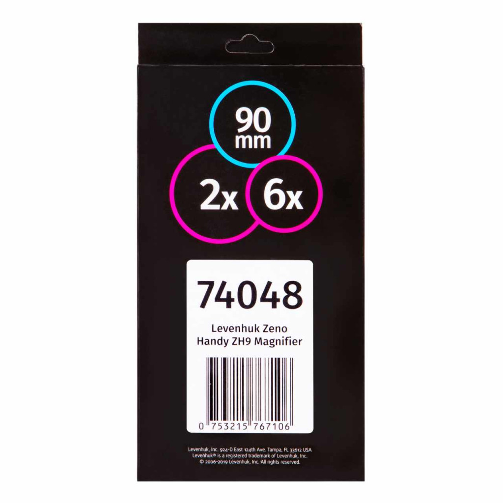 A Levenhuk Zeno Handy ZH9 nagyító egy klasszikus kézi nagyító kis tárgyak tanulmányozásához. Megfelelő vázlatok és kisbetűs szövegek olvasásához, bútor vagy szövet hibáinak vizsgálatához és apró tárgyakkal való munkához. Tökéletes segítség fényképek vagy illusztrációk albumban való nézegetésekor, illetve ékszerek részleteinek és térképek tanulmányozásakor. A nagy lencseátmérő lehetővé teszi egyszerre széles terület belátását.