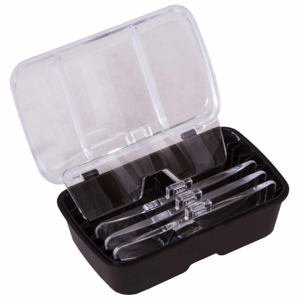 A Levenhuk Zeno Vizor nagyítók nagyszerű társak a munkában és a hobbitevékenységek végzésekor! Ez a típus különböző nagyítású, cserélhető lencsékkel és LED-es világítással rendelkezik. A praktikus LED-es megvilágítás elemes táplálású, és kikapcsolható, ha nincs rá szüksége. A megvilágítás szöge állítható. A fejpánt mérete állítható, így egyszerűen a fejéhez igazíthatja. Fő jellemzője, hogy Önnek nem kell kézben tartania a nagyítót, így kezei szabadon maradnak a munkavégzéshez! Ez a nagyító folyamatosan szeme előtt van, és a munkaterület felé irányul.