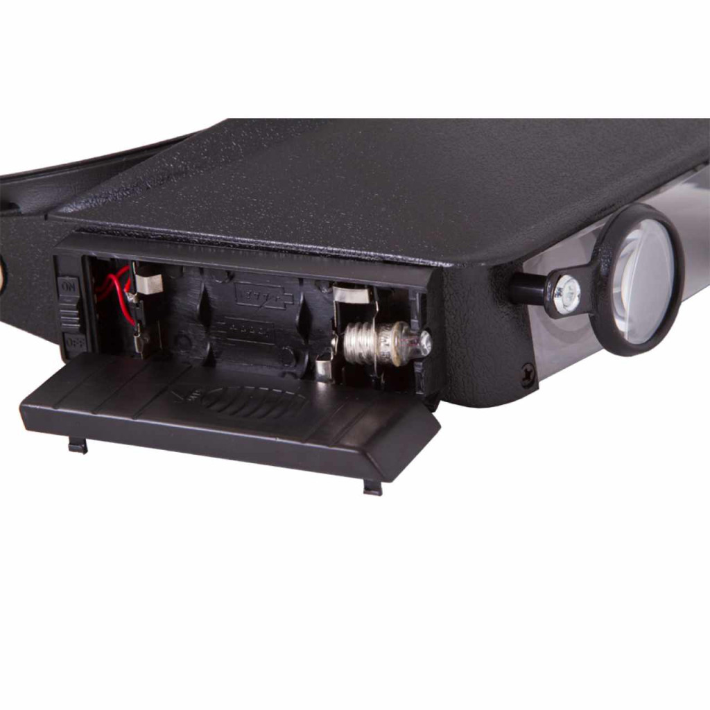 A nagyító fejre szerelhető – a speciális, rugalmas, tépőzáras pánt segítségével könnyedén rögzíthető a fejen. A pánt hossza állítható – a nagyító néhány másodperc alatt biztonságosan rögzíthető, és mindaddig a helyén marad, amíg arra szüksége van. A beépített világításnak köszönhetően a nagyító sötétben vagy kedvezőtlen fényviszonyok mellett is használható. A két világos izzó a főlencse bal és jobb oldalán található. Az izzók AAA elemekkel működnek (nem része a készletnek).
