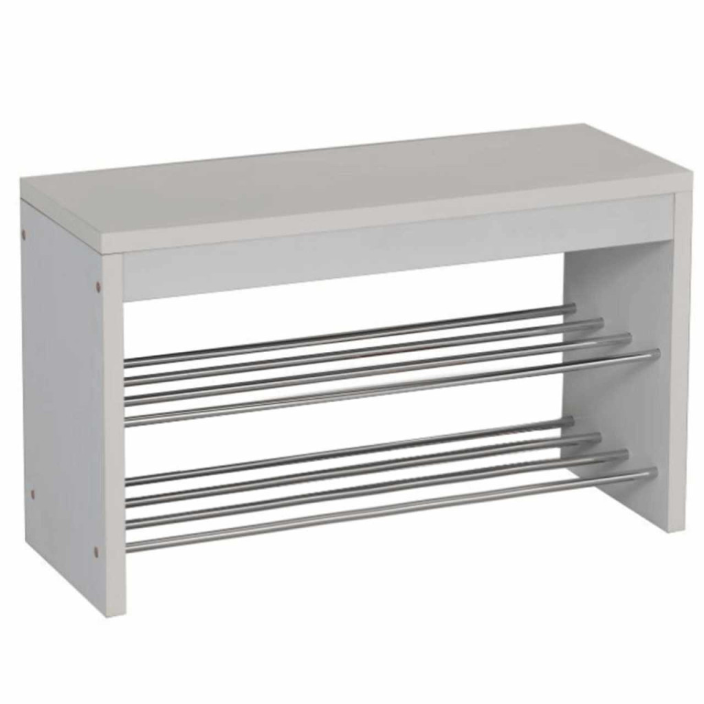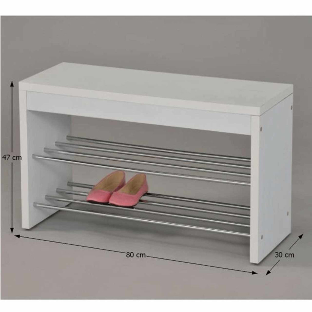 Pad cipőtartóval LUSIA Szín: fehér/krómozott Anyag: MDF/fém Méretek (SzéxMéxMa): 80x30x47 cm Teherbírás: 100 kg. Szállítás szétszerelve.