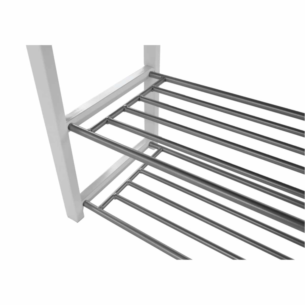 Lóca cipőtartóval LANGELLA Szín: szürke/fehér Anyag: szövet/fém A szövet kopásállósága: 65 000 MartindaleMéretek (SzéxMéxMa): 81x31x49 cm Súly: 5,8 kg Teherbírás 80 kg. Szétszerelt állapotban szállítjuk