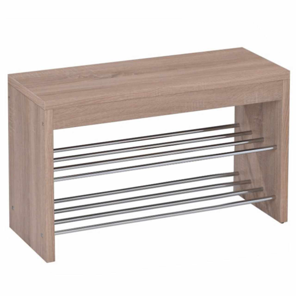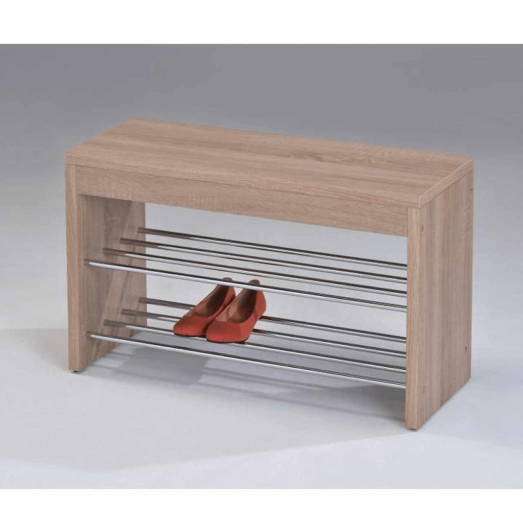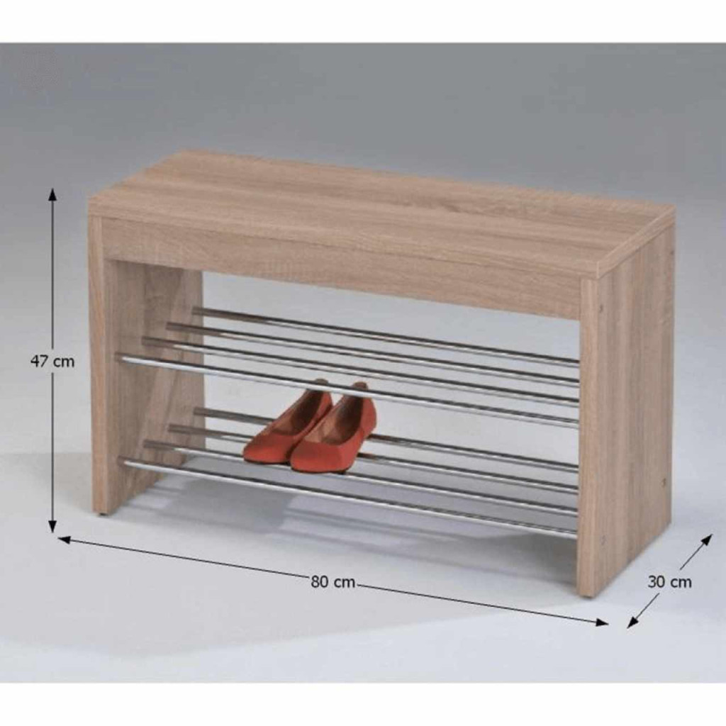 Pad cipőtartóval LUSIA Szín: sonoma tölgy/króm Anyag: MDF/fém Méretek (SzéxMéxMa): 80x30x47 cm Teherbírás: 100 kg. Szállítás szétszerelve.
