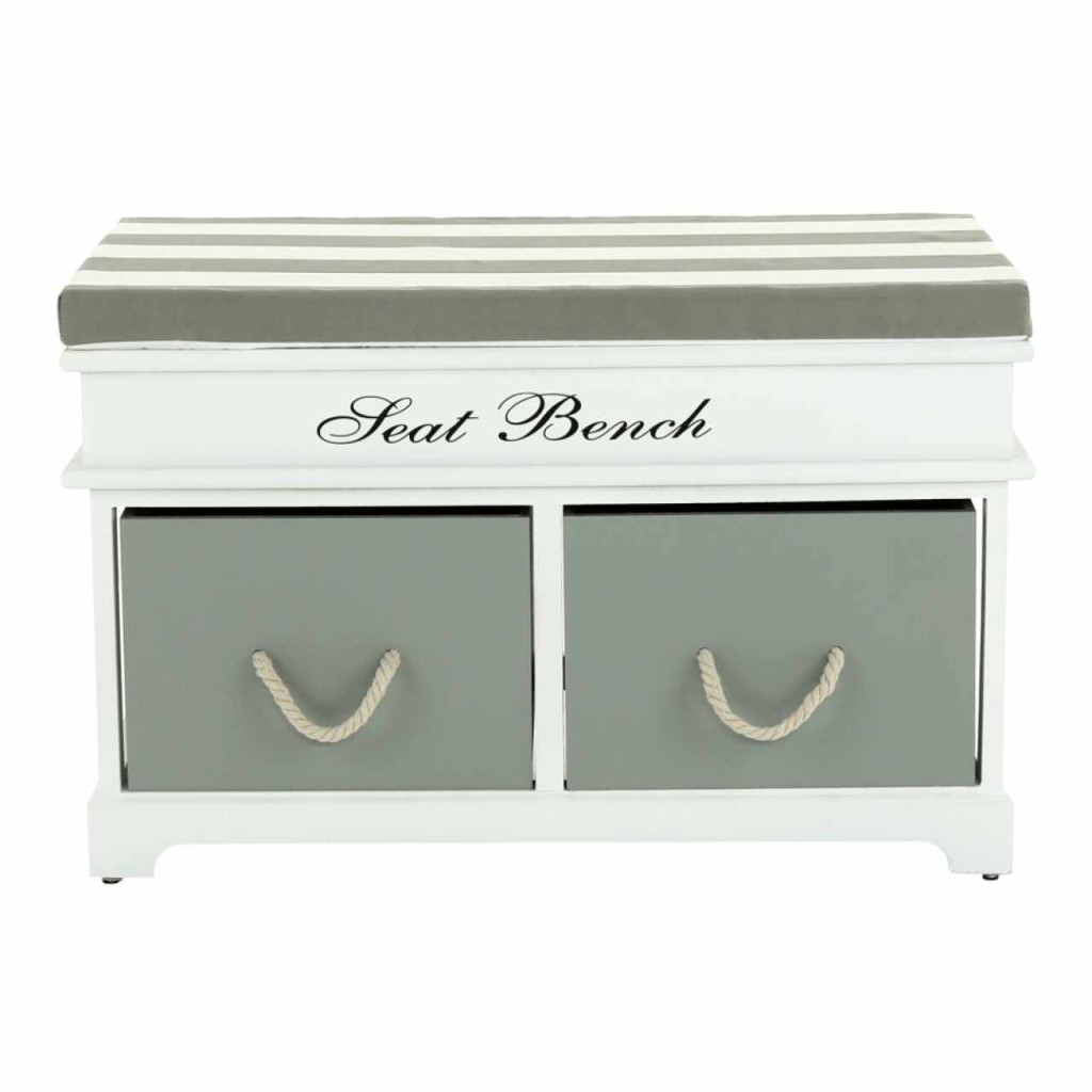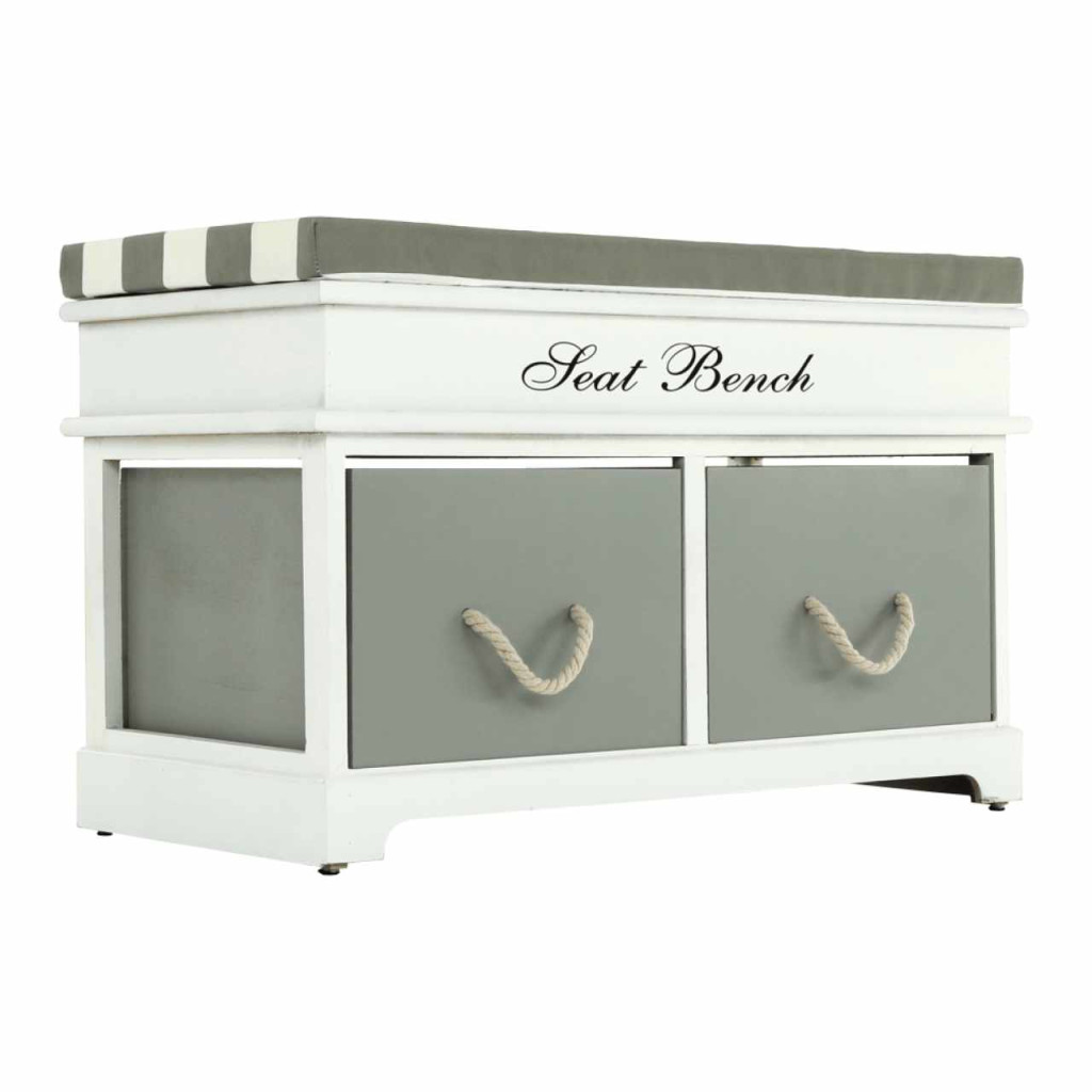 Lóca párnával, 2 fiók, fehér/szürke, SEAT BENCH 2 NEW