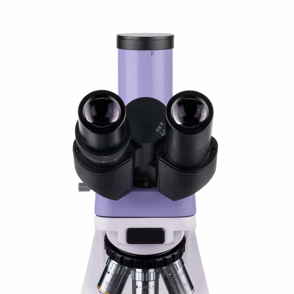 A háromszemlencsés fejrészhez két szemlencsecső tartozik a megfigyelésekhez, továbbá egy függőleges tubus a digitális kamera rögzítéséhez (a kamera nem tartozék). A tubusok dőlésszöge 30°, hogy hosszú munkavégzés esetén is kényelmes legyen a használat, illetve 360°-ban elforgathatók, hogy a megfigyelő magasságához lehessen beállítani őket. A bal oldali tubuson dioptriaállító gyűrű található.