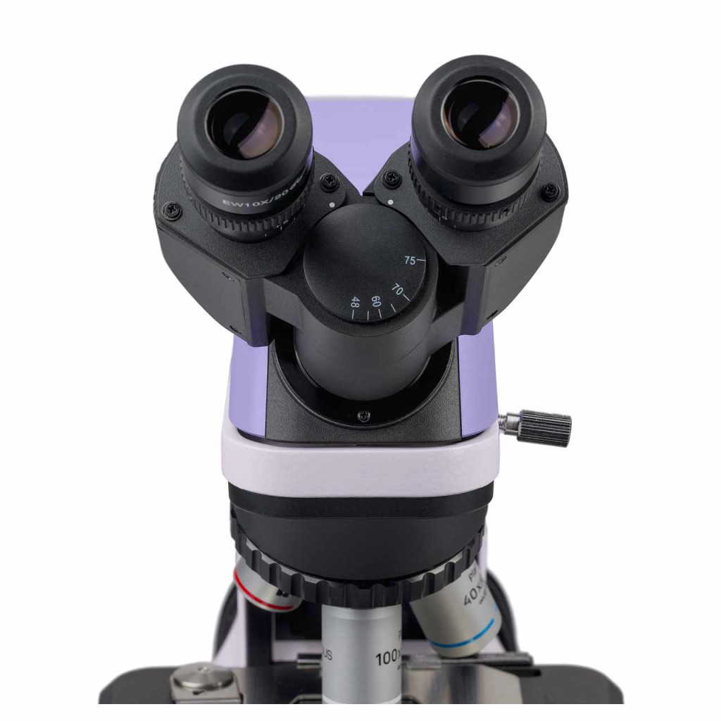 Kétszemlencsés fejrész végtelenre korrigált optikai elemekkel. 360°-ban elforduló szemlencsecső. A felhasználó be tudja állítani a szemlencsén a magassághoz illő szemtávolságot.