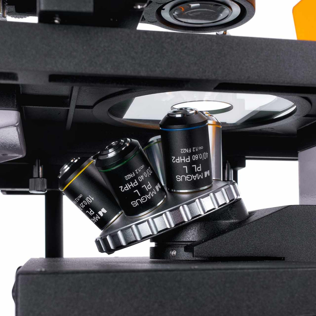 Négyállású fáziskontrasztos tornyos kondenzor. Egy szabad foglalat a világos látóterű mikroszkópiához való, a másik három foglalat pedig fázisgyűrűs lemezekkel 10x, 20x és 40x nagyítású objektívekkel való munkavégzéshez használható. A fáziskontrasztgyűrűk központosíthatók. A mikroszkópos technikák közötti gyors és intuitív váltás időt takarít meg, és egyszerűbbé teszi a kutató munkáját.