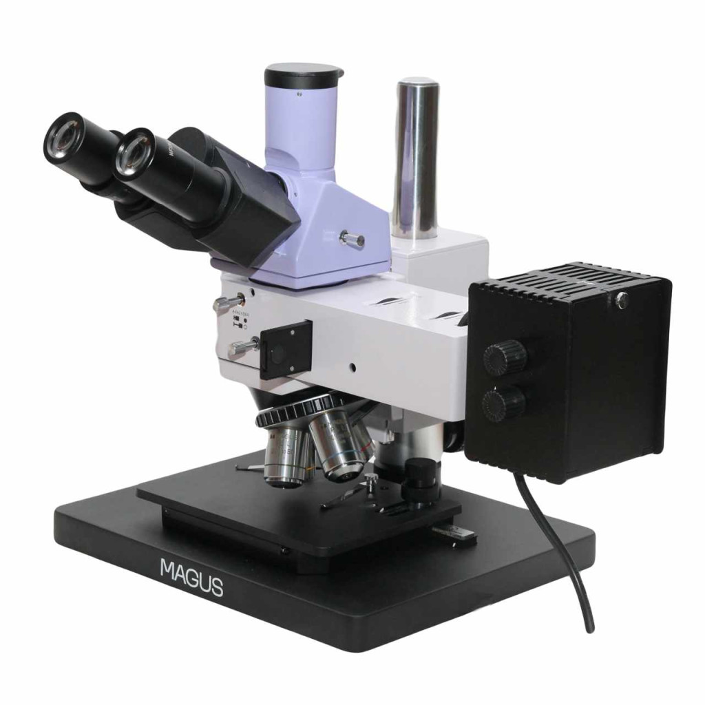 MAGUS Metal 630 BD metallográfiai mikroszkóp világos látóterű, sötét látóterű és polarizációs mikroszkópiai technikákhoz. Az erős halogén világítás bármilyen objektívlencsével és bármilyen mikroszkópiai módszerrel minőségi képet biztosít. A mikroszkópot fémek, félvezető anyagok és nem átlátszó objektumok mikrostruktúrájának minőség-ellenőrzésére és tanulmányozására tervezték. Segítségével kutatások végezhetők a gyártólétesítményekben, kutatóközpontok laboratóriumaiban, valamint az egyetemi tanszékeken.