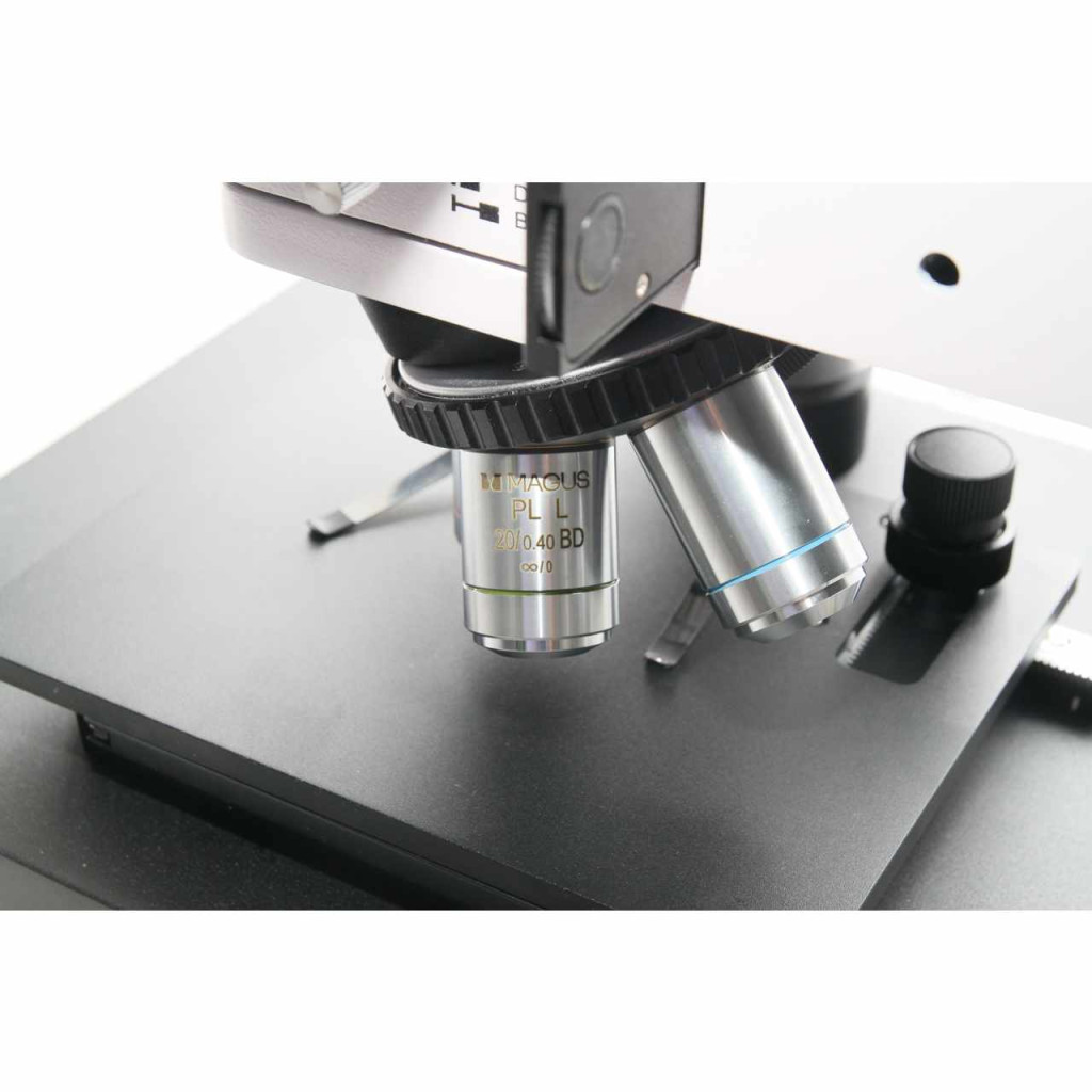 Miután a mellékelt objektíveket beszerelte a revolverfejbe, egy hely még üresen marad egy további objektív beszerelésére. Az összes alapobjektív sík-akromatikus és nagy munkatávolságú – világos és sötét látóterű mikroszkópiához egyaránt alkalmasak.