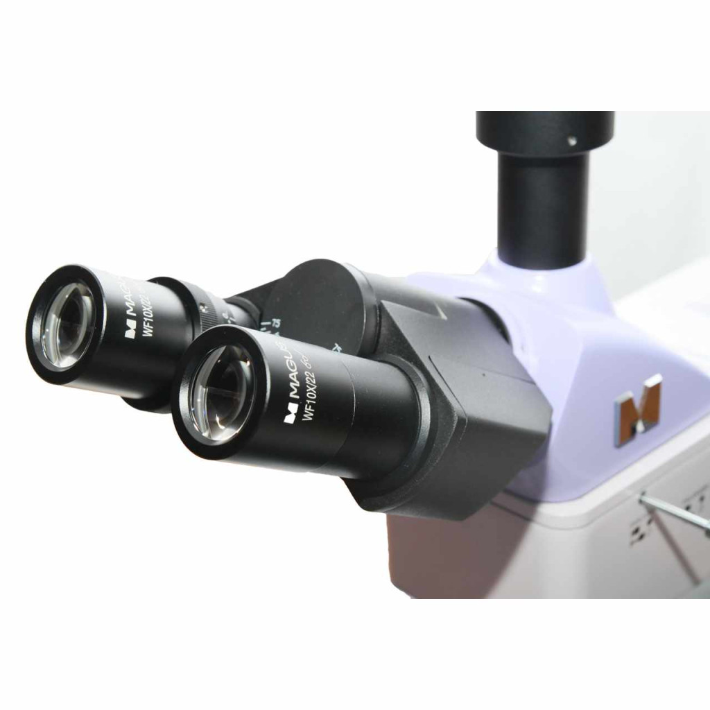 A végtelen síkú akromatikus optikai elemek éles és részletes képeket biztosítanak. A mikroszkóp háromszemlencsés fejrésze 30°-ban döntött, és a digitális kamera felszereléséhez alkalmas háromszemlencsés tubussal is rendelkezik. A kamerával (nem része a terméknek) fényképek és videók rögzíthetők a vizsgált objektumról, valamint a mikroszkóp képe kivetíthető egy külső képernyőre. A terméken egy kétállású sugárosztó is található: 100:0 és 0:100. A rendszer a fénysugarat a szemlencsékbe vagy a kamerára irányítja. A bal oldali tubuson dioptriaállító gyűrű található.