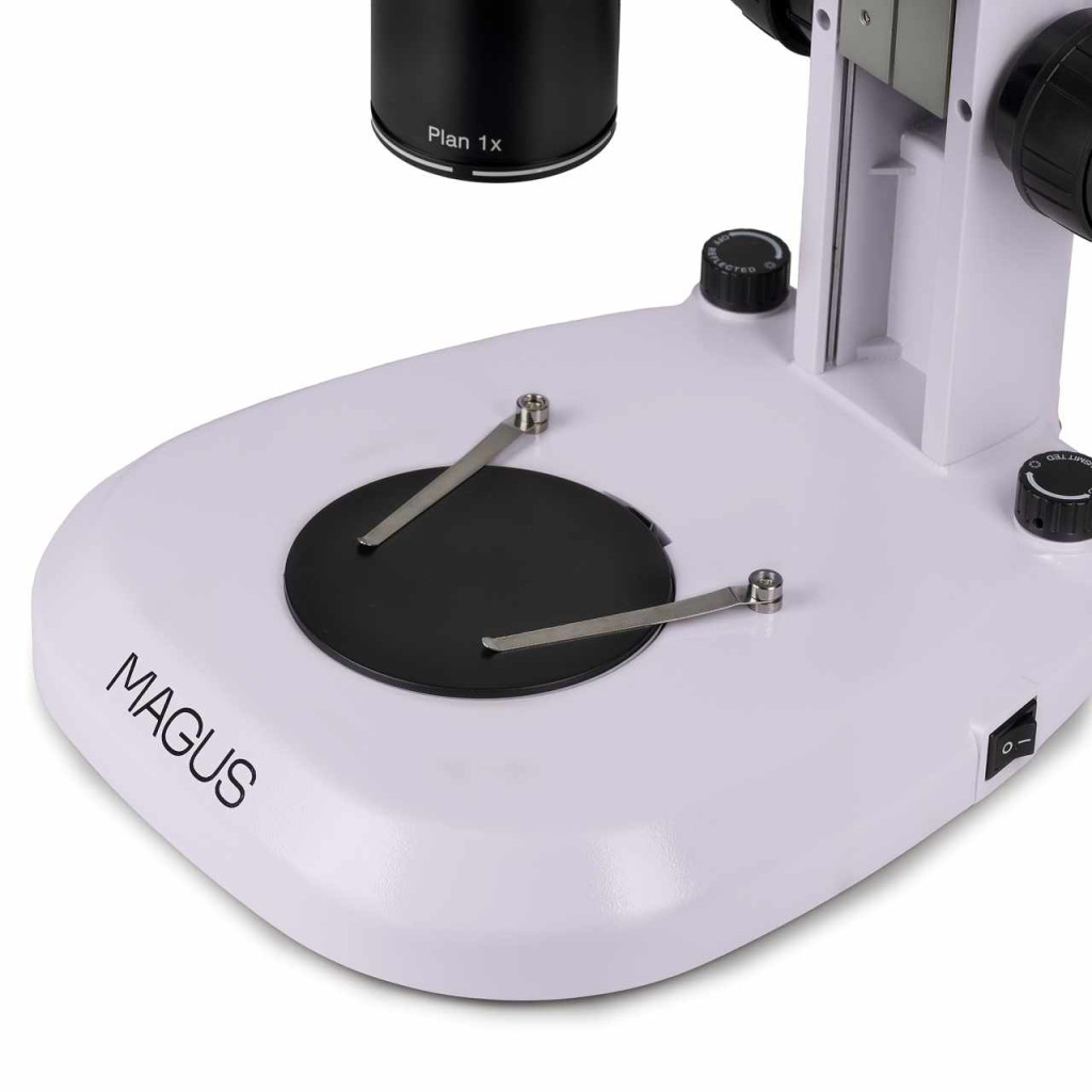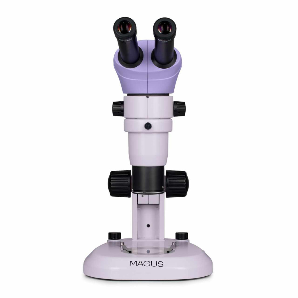 Zoom objektívlencse – párhuzamos optikai csatornákból álló lencserendszer – simán változtat 6x nagyítást a fókusz elvesztése nélkül. A mikroszkóp egyenes, függőleges (nem fordított) háromdimenziós képet biztosít.