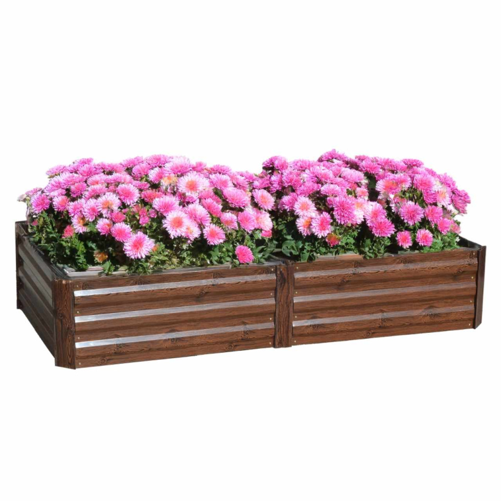 Virágágy anyaga: acél/alumíniumSzín: barna/mintás faKülső méretek (SzxMéxMa): 235x60x30 cmBelső méretek (SzxMéxMa): 233x58x30 cmAnyagvastagság: 0,3 mm, sarok 0,8 mmAlkalmas bentre és kintreAlj/padló nélkül szállítvaKönnyű összeszerelésAcél porszórt felületkezelésselGyógynövényekhez, virágokhoz vagy zöldségekhezKülönböző igényű növényekhezNagyobb védelem a csigák ellenKisebb hajlam a gyomnövekedésreIdeális tápanyagszegény talajú helyekreA legkisebb kertekbe is alkalmasModern dizájnSokoldalú felhasználásAlkalmas ajándékkéntBontásban szállítva