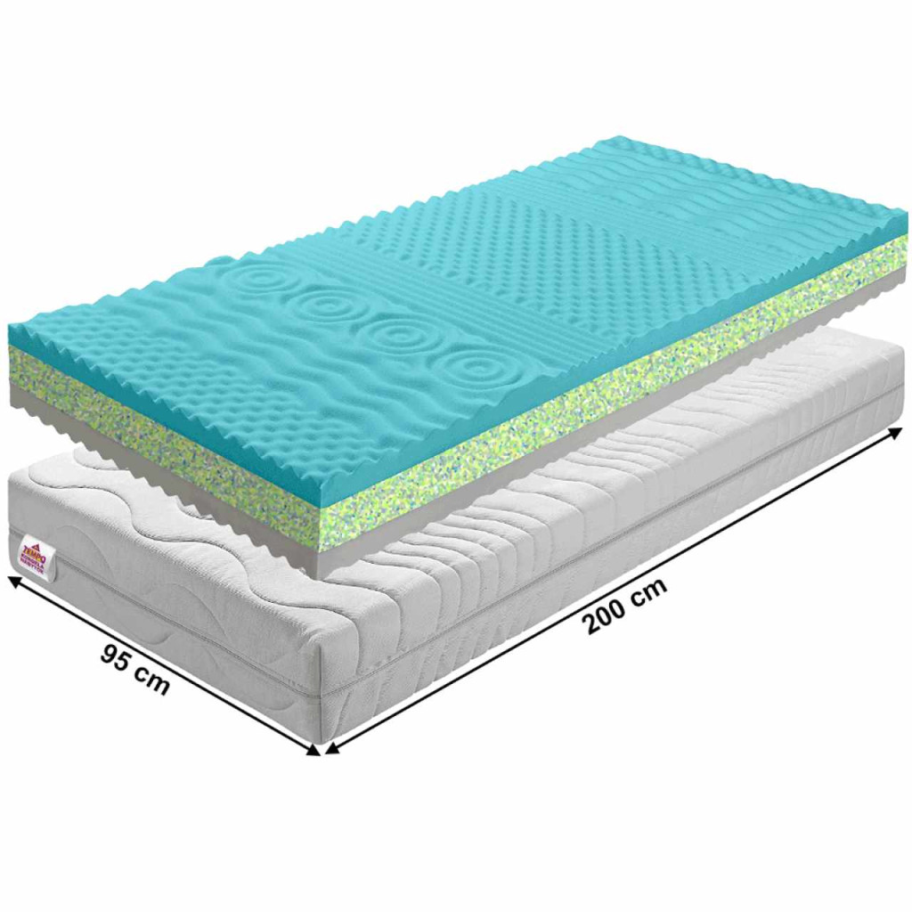 Hétzónás habmatrac BE KATARÍNA 10 NEW huzattal CHLOE ACTIV Méretek (SzéxH): 95x200 cm Matrac magassága: 14 cm Teherbírás: 110 kgA közepesen kemény matracA közepesen kemény matrac a legjobban alkalmazkodhat a fekvőhöz, nem okoz ellennyomást és a hátgerincet is egyenesben tartja. 70 és 120 kilogramm közötti emberek számára alkalmas.Rugalmas lamellás (előfeszített, rugalmas lamellák)A lamellák távolsága max. 6 cmA lamellák vastagsága 0,5-1 cmA hab színe változhat. A matrac akár teljesen más színű is lehet, mint az a képen látható. Tulajdonságait azonban ez semmilyen módon nem befolyásolja.